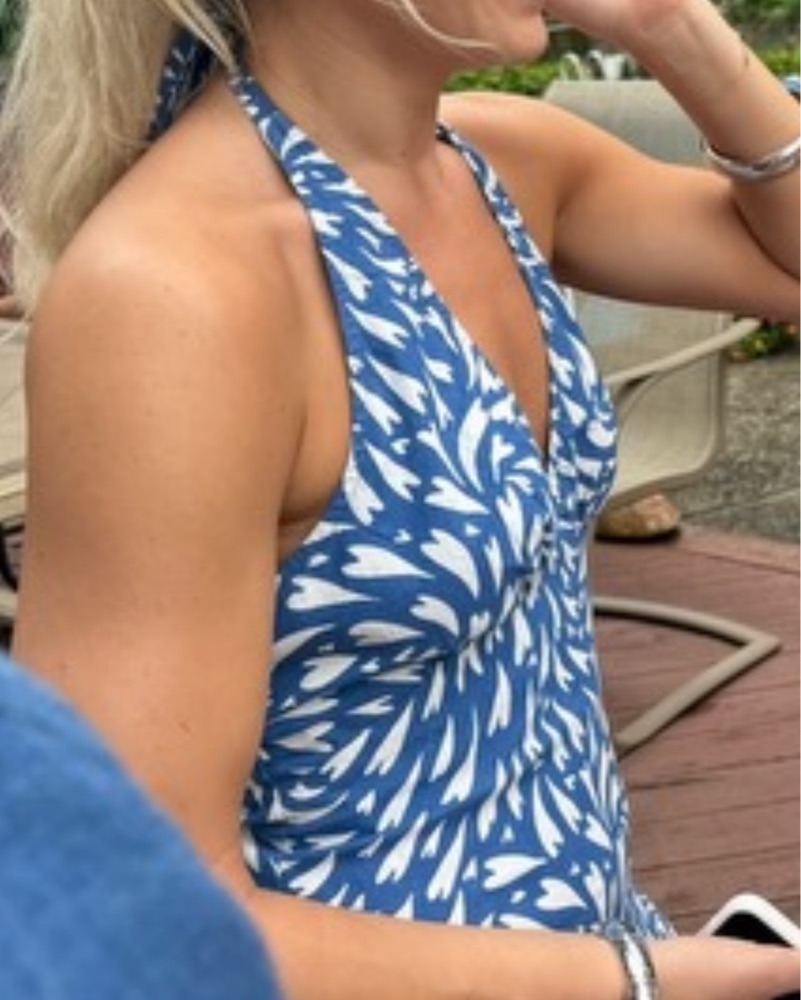 Free people Cecil dress in indigo combo, halter top, zip back, really comfortable
