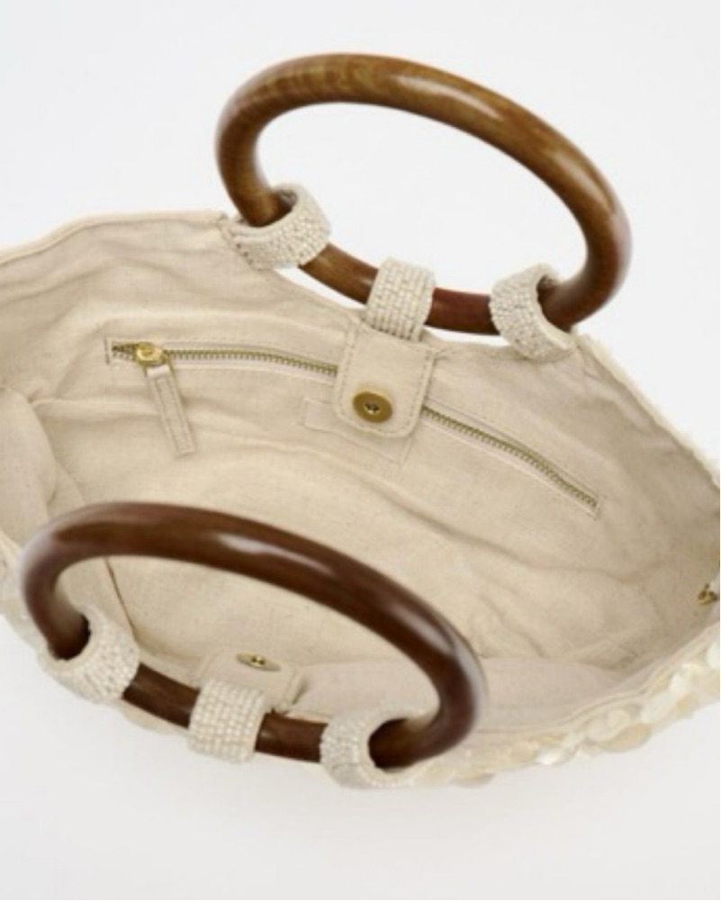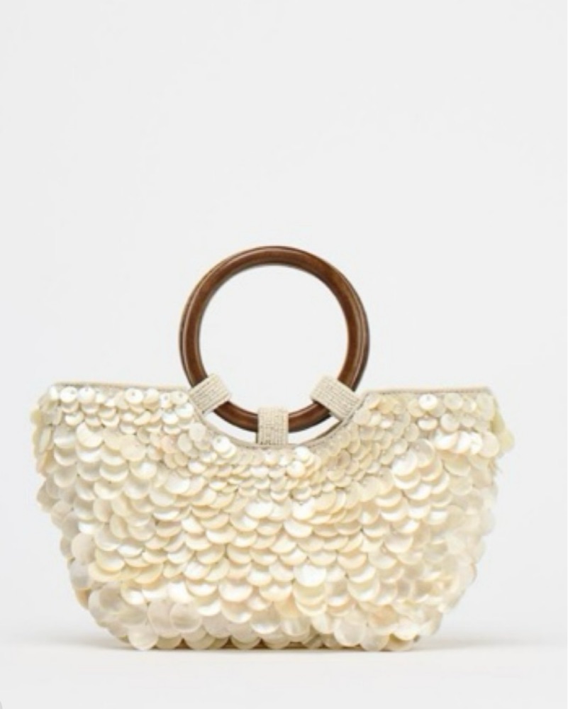Elevate your look with this pearl statement handbag! Perfect for the summer, a beach vacation, etc