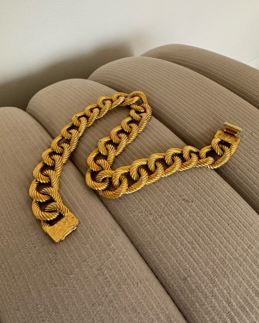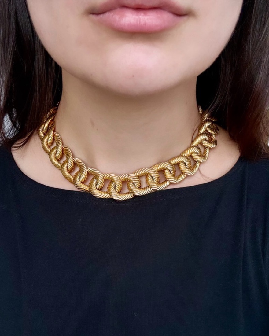 This is one of my favorite vintage finds, and I know this quality is hard to come by, so wanted to share the love! Thick, durable, and beautifully detailed necklace with couture clasp detail. Swipe to last slide to see how I recently styled it! Purchased at trunk show for $250✨