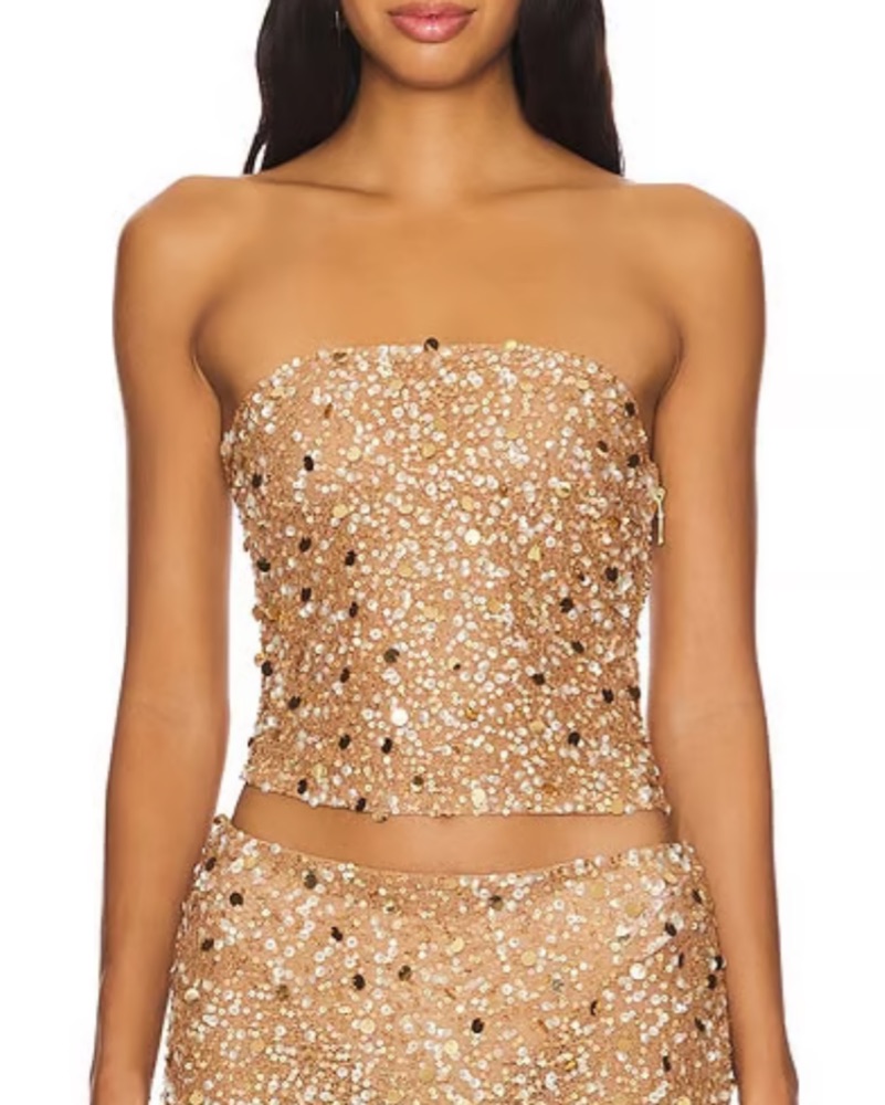 This stunning sequin crop top and skirt set is perfect for a night out or a special occasion. The sparkling gold sequins create a dazzling and eye-catching look.