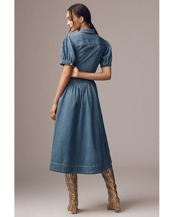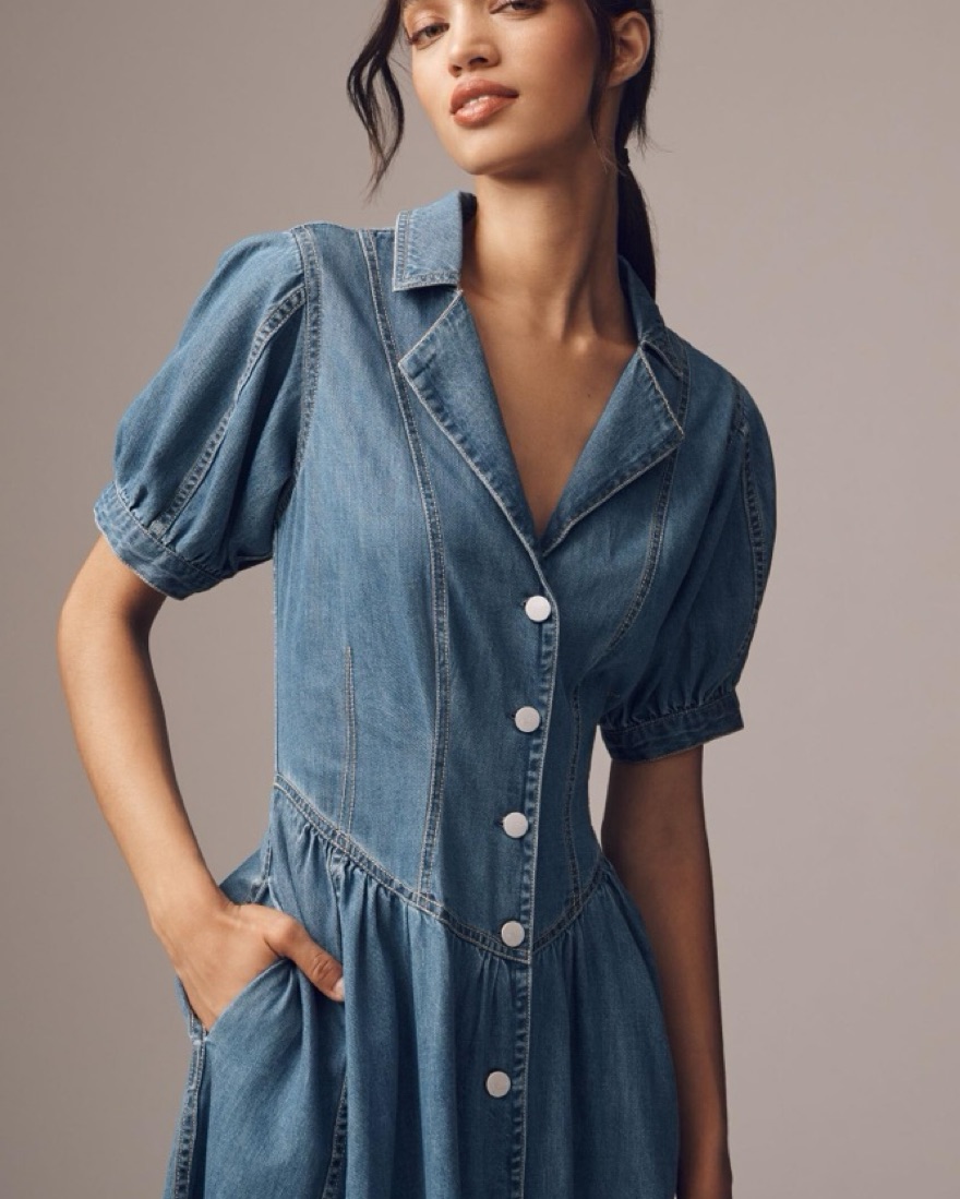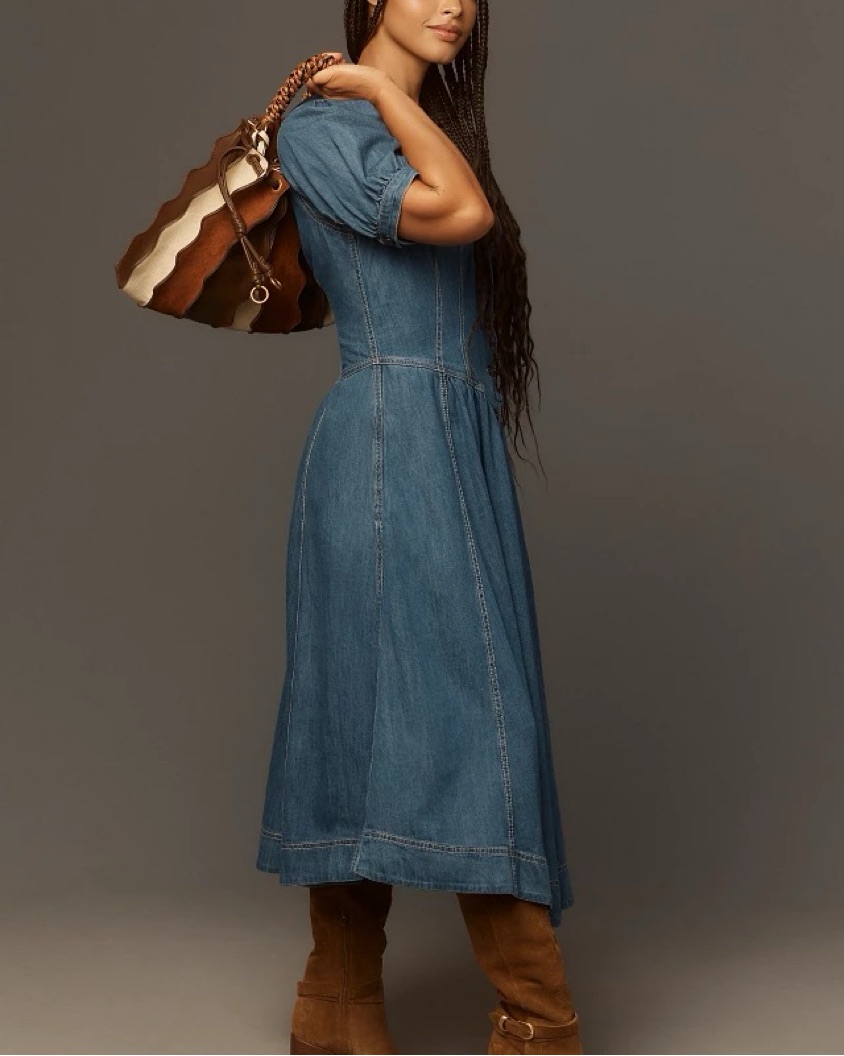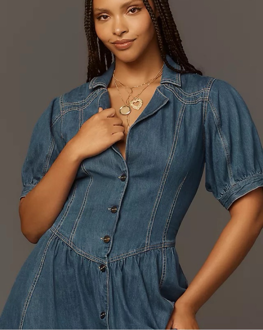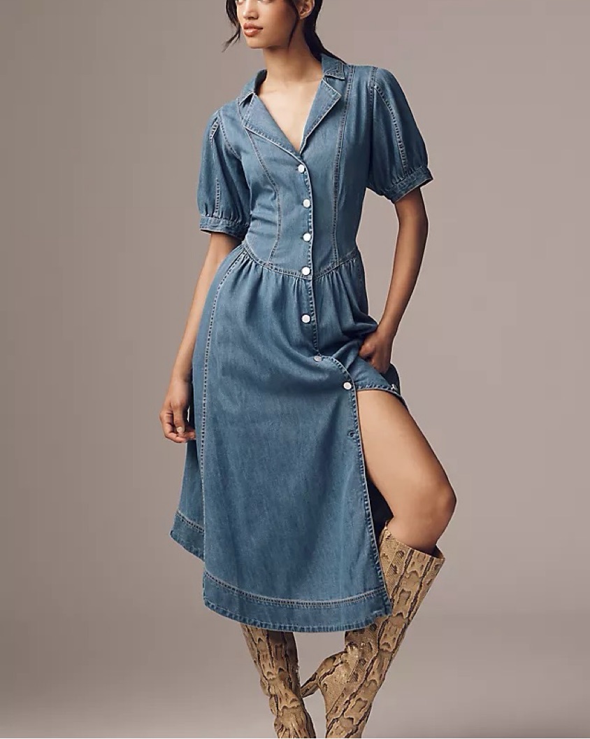 This is the Anthropologie Pilcro short sleeve denim midi maxi dress button up. This was part of their 2025 spring launch. So adorable and so perfect for western cowgirl look