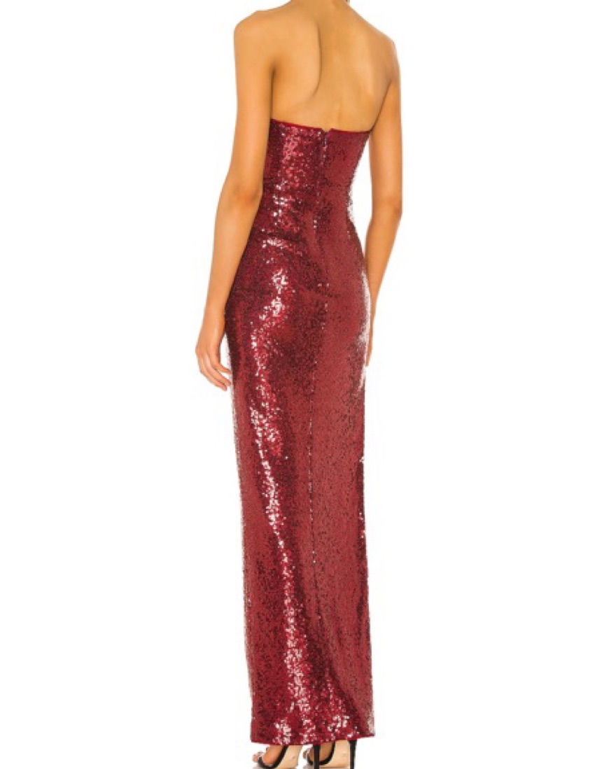 XS Michael Costello x REVOLVE Hugo Gown — Sold out red, strapless, sequin gown from Revolve. Great condition, only worn twice for NYE & black tie event!