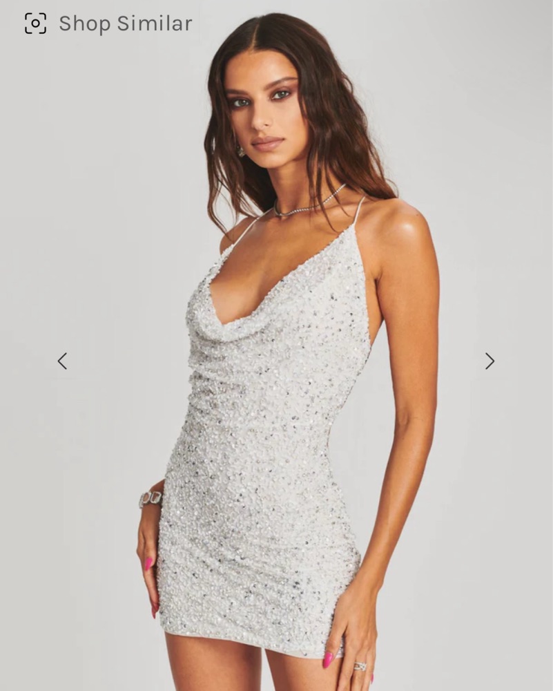 This stunning sequin-embellished dress is perfect for a night out on the town. The form-fitting silhouette and eye-catching embellishments make this a head-turning choice.