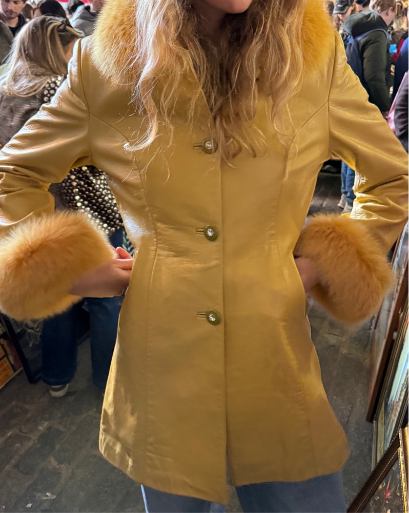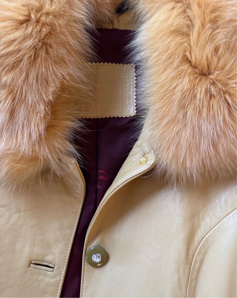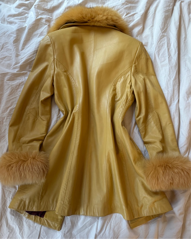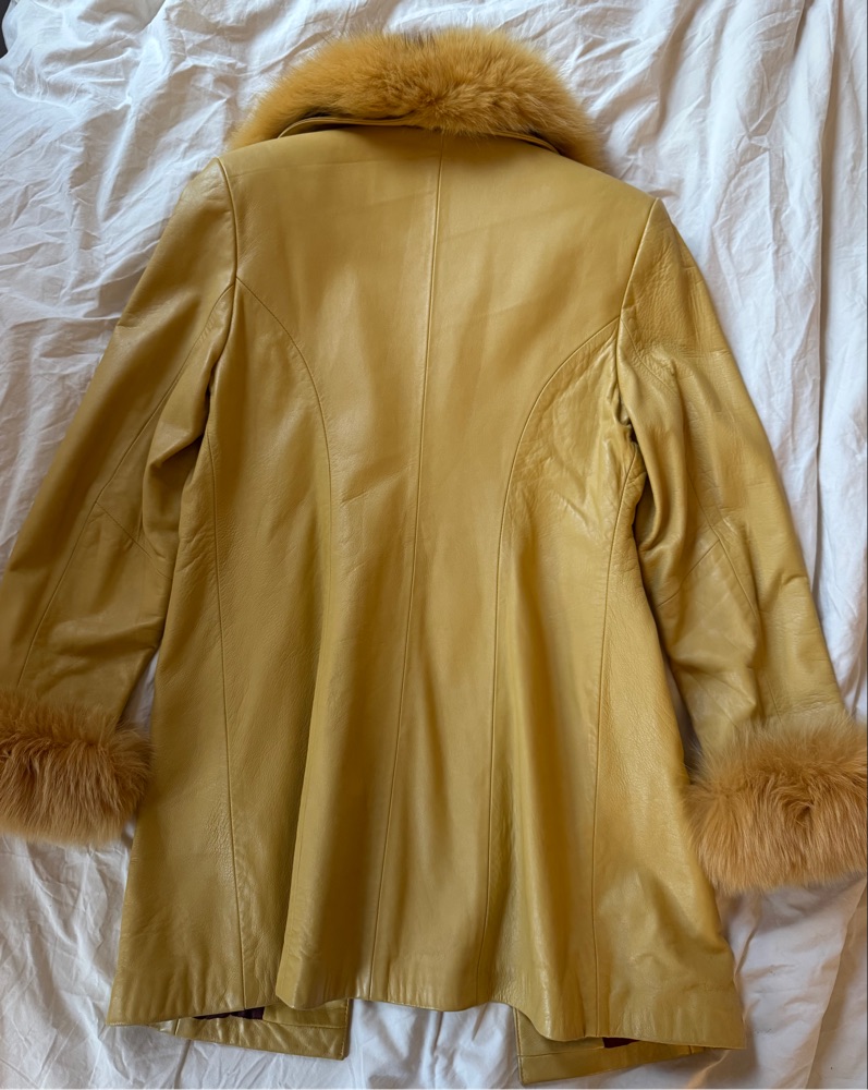 Faux Fur Trimmed Leather Coat by Vintage - Pickle