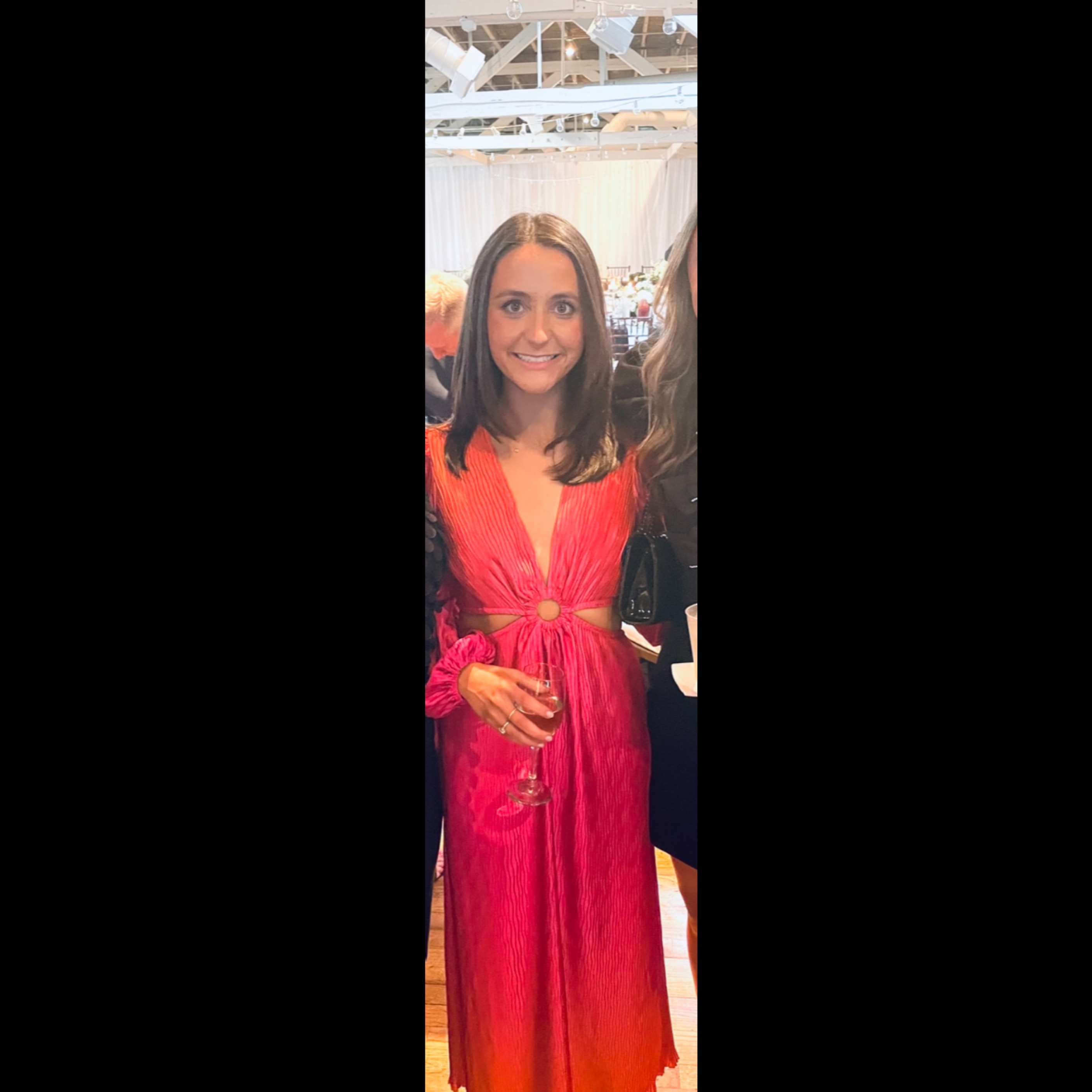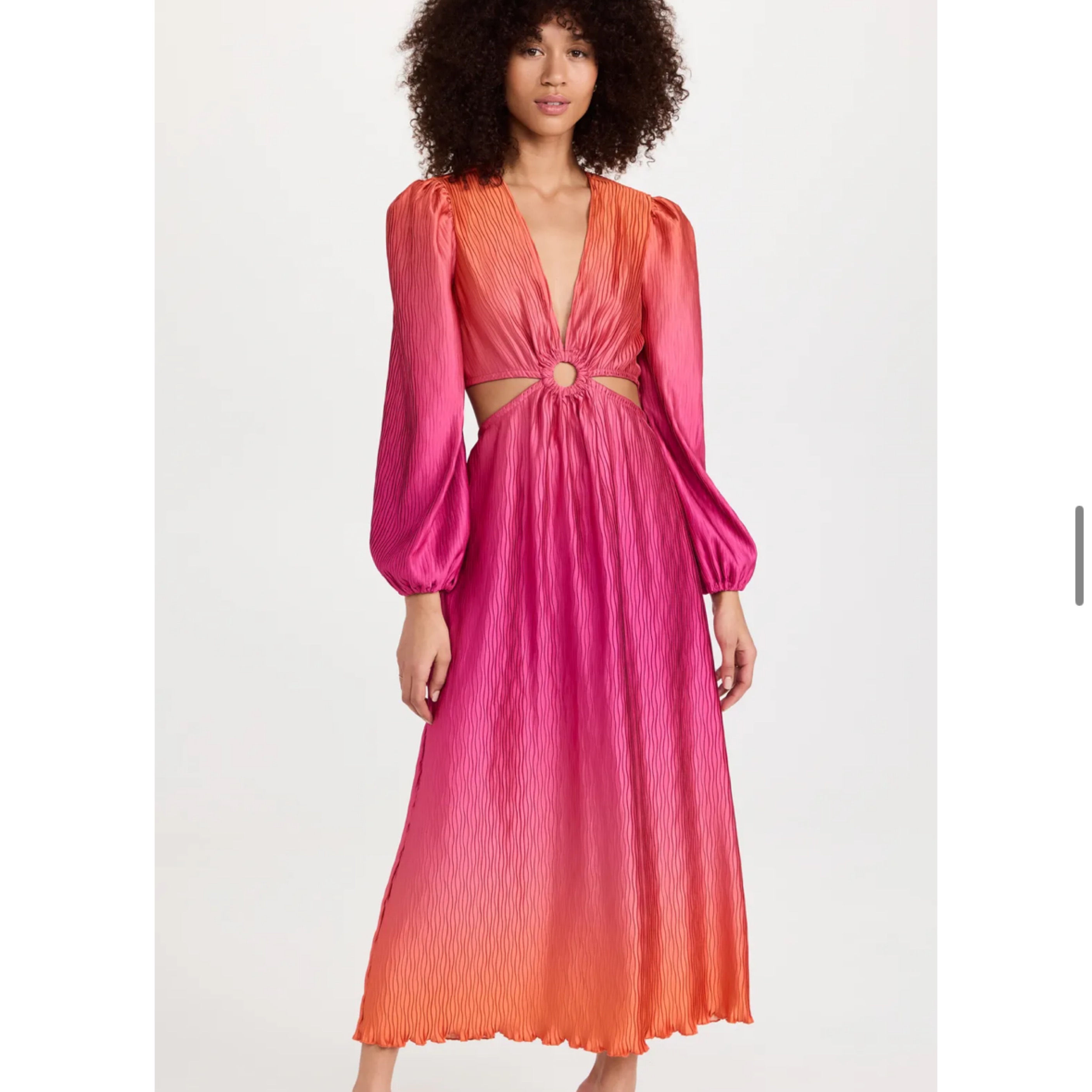Pink and orange ombre v neck dress with side and back cut outs. Im 5’6” and it hit my ankles