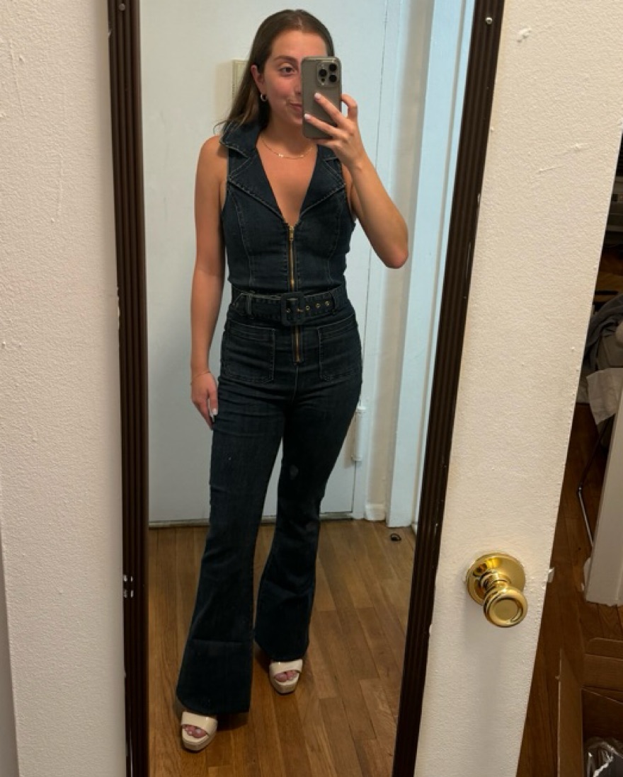 This denim jumpsuit is perfect for a night out or a casual day. It’s stretchy and fitted material so it’s super comfy too! The zipper and belt also make it adjustable to your style