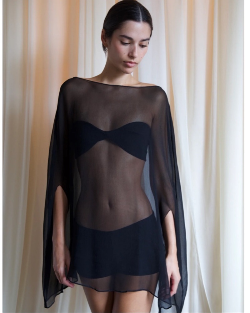 I have two of these, message me if shows unavailable Buci set includes poncho, twist tie top and shorts. All size small. Please no spray tan and please be careful when wearing the poncho is very delicate. I also have this set in white