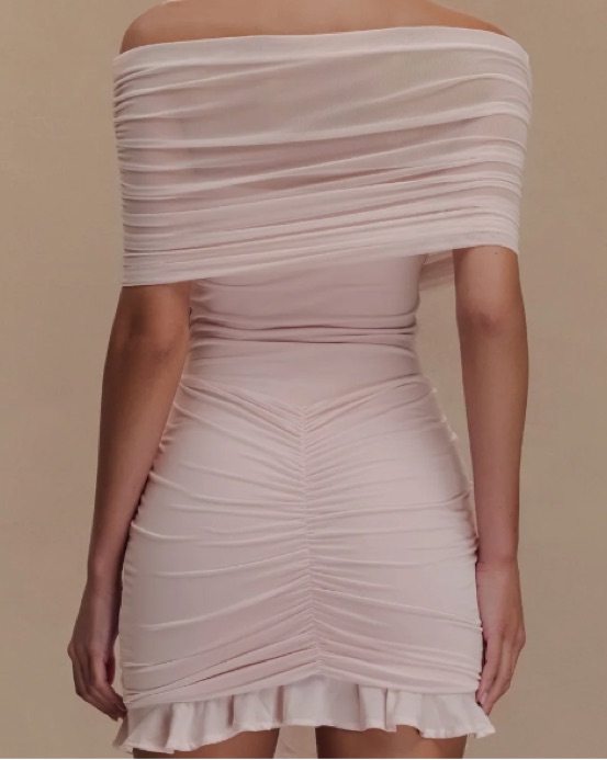 Meshki Mesh Off Shoulder Mini Dress by Meshki - Pickle