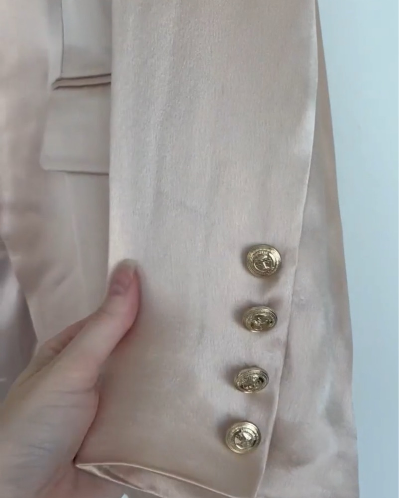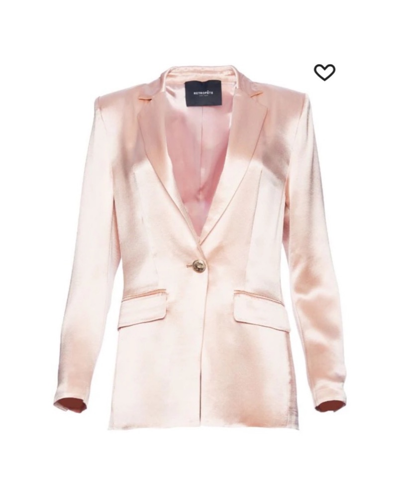 Retrofete Leo Satin Blazer in dusty peach. Has shoulder pads