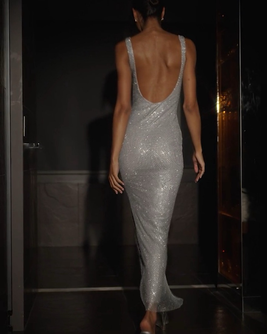 Annika Diamante Mesh Maxi Dress - Silver by Meshki - Pickle