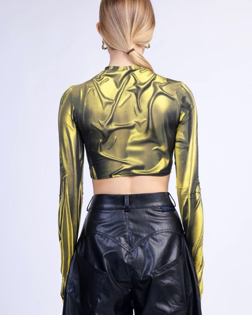 Cropped Yellow Wetlook Top by KETA GUTMANE - Pickle