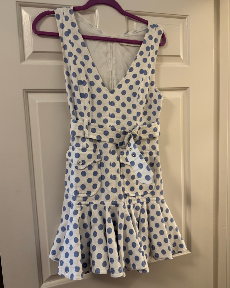 Zimmermann blue and white polka dot Super Eight Safari Mini Dress Sz 1 (us small)