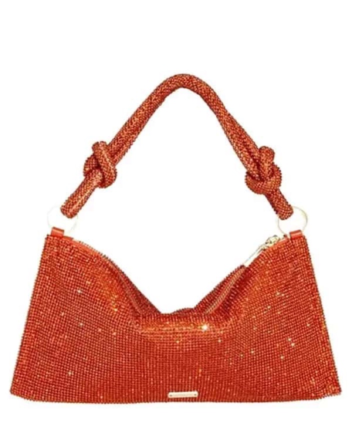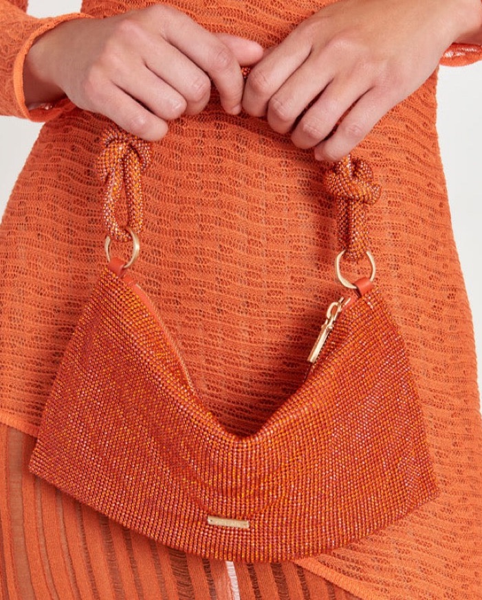 This Cult Gaia bag is crafted from polyester and features a top handle with a knotted detail. It can be carried handheld or as a shoulder bag. Product ID: SH2086MSPPY0S Rosso.