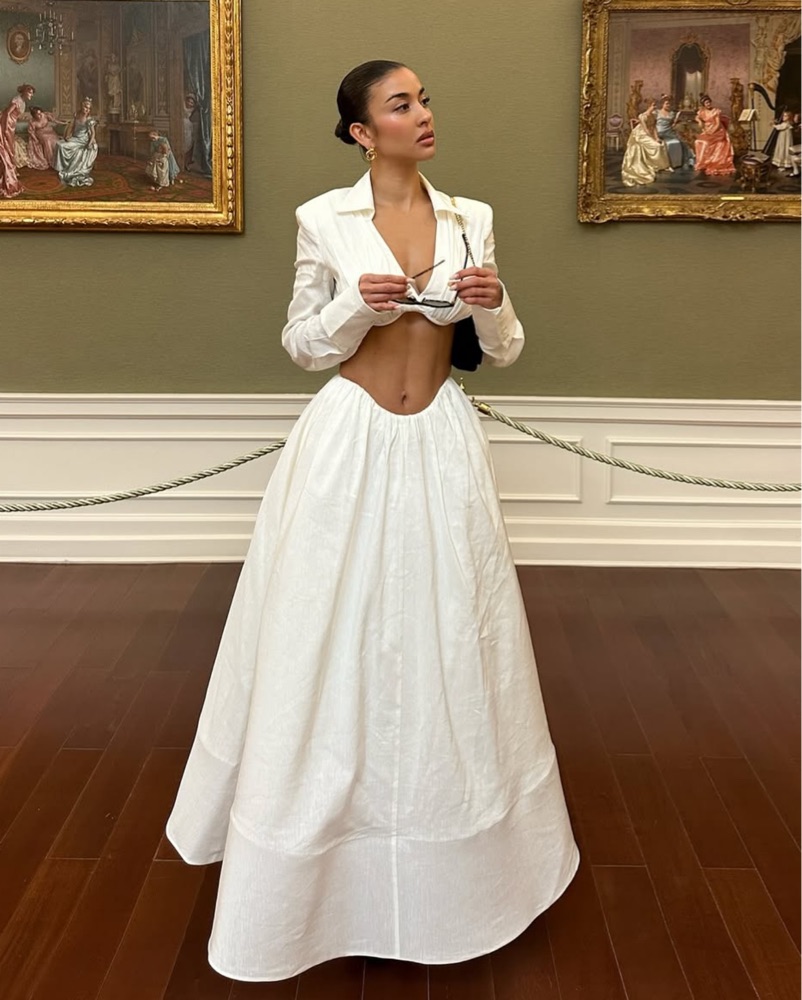 Fully Lined & Linen. Do NOT WASH OR DRY CLEAN!!! SPOT TREAT HAND WASH & AIR DRY ONLY! Take good care of this. If it comes back with stains or imperfections I will charge damage fees. Size small top Size small skirt. No stretch