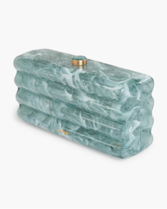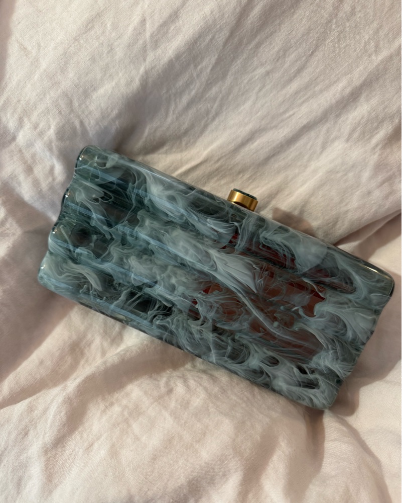 The Seaspray Enid Clutch draws inspiration from the ocean. The marbled effect is designed to emulate the waves. Add this party-ready ac