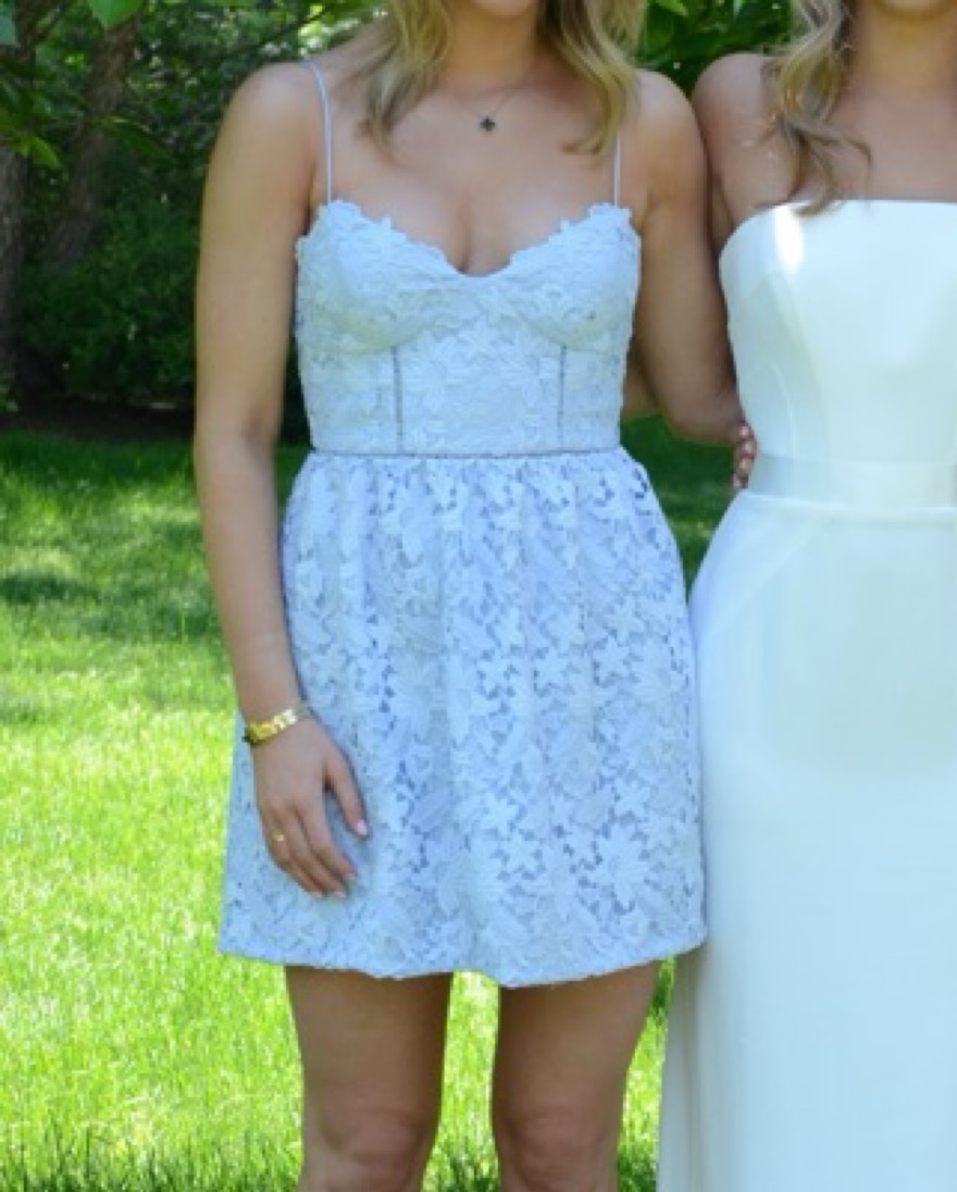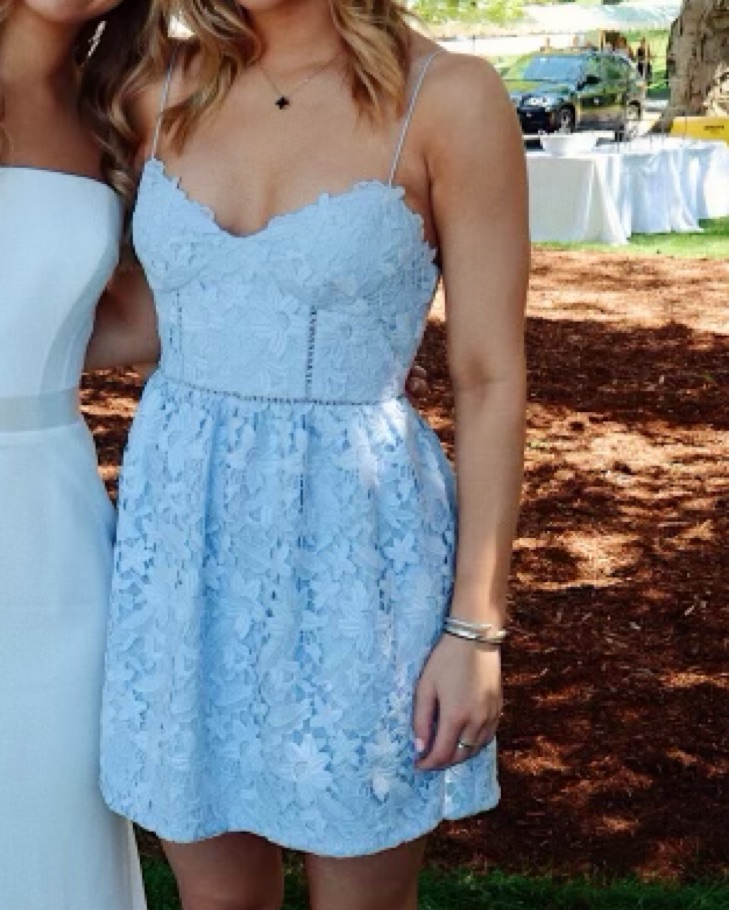 Blue lace dress, looks like self portrait, was hemmed from original length but still fits like a 2