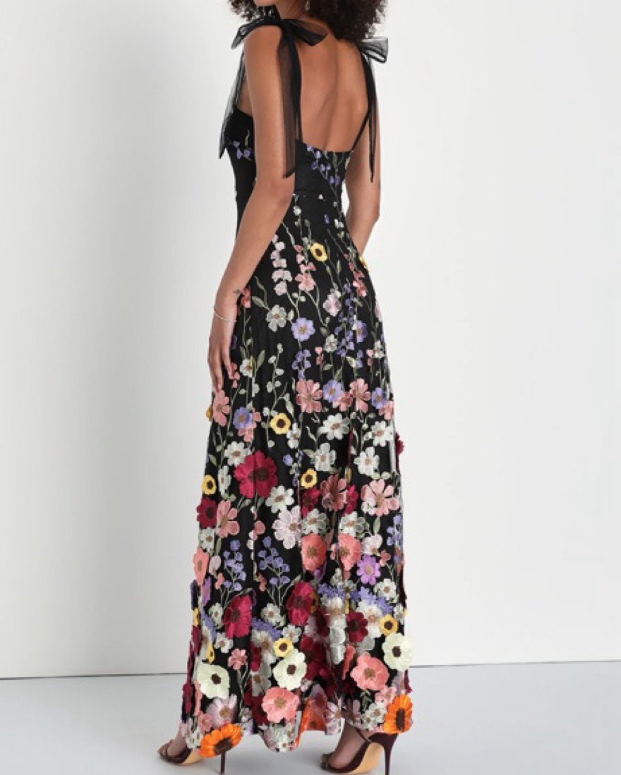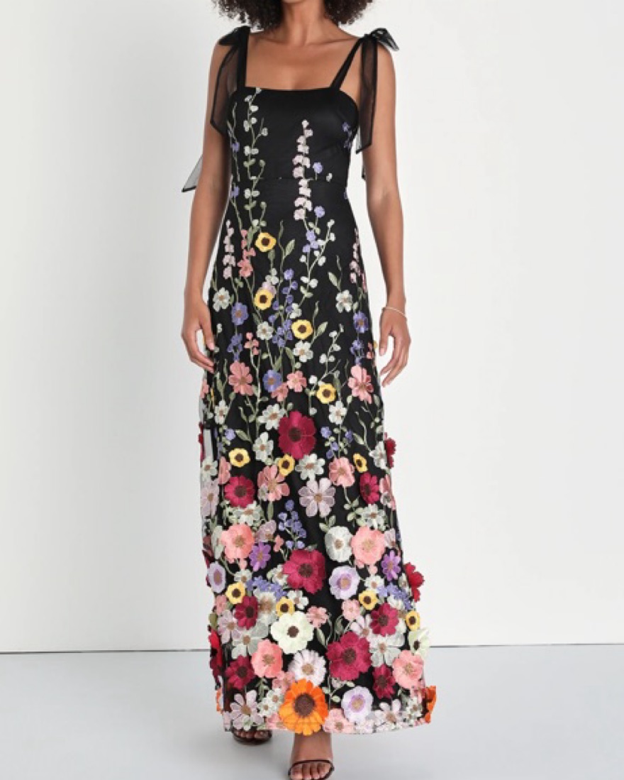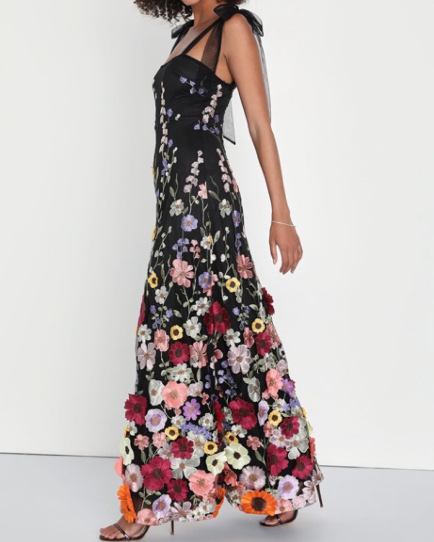 Length: Floor length. Size M measures approximately 49.5" from adjustable straps to hem.
