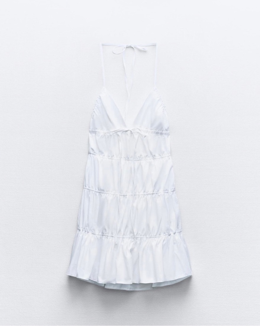 This dress is very comfortable and flattering. No zippers or adjustable straps, but you can tie the dress to what suits you. Not see through at all.