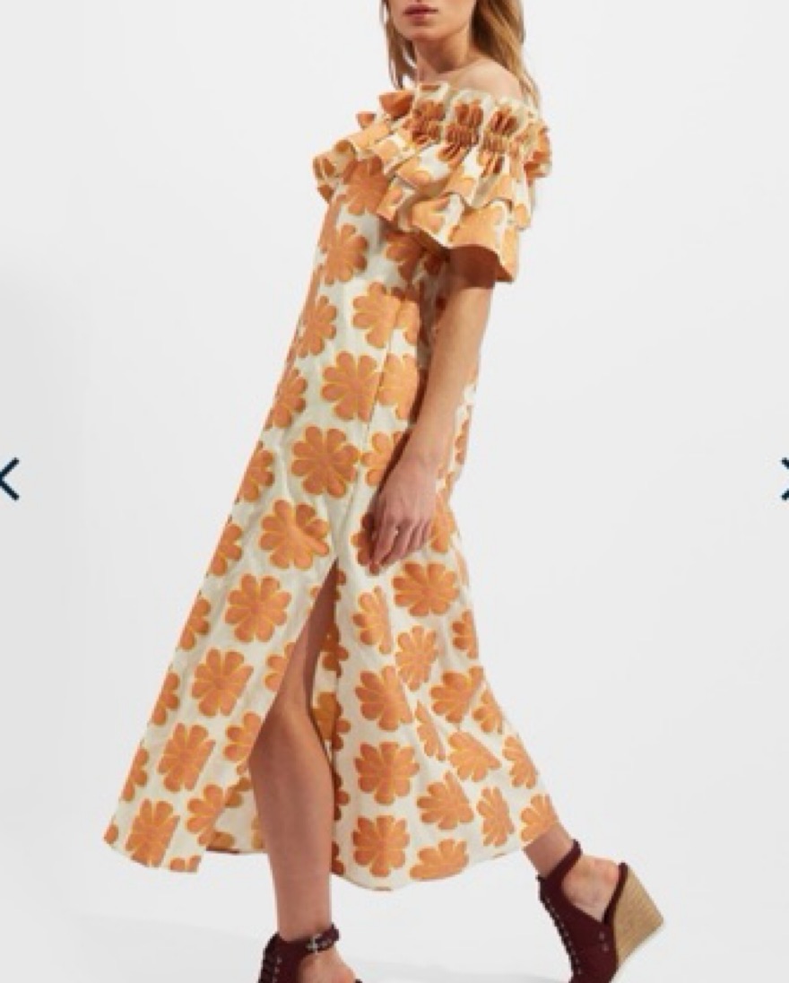 Great dress for a wedding for fall! Off the shoulder. Model in first pic is 5’1” and wearing heels.