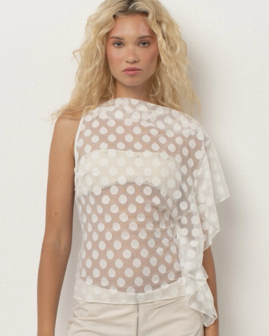 BELLE Zehra Top - White Polka