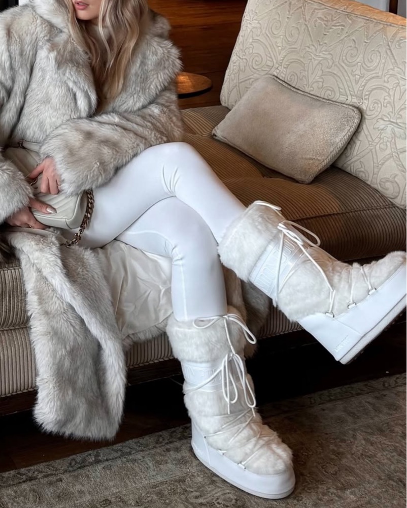 Icon white faux fur moon boot. Small size size 7/7.5 max