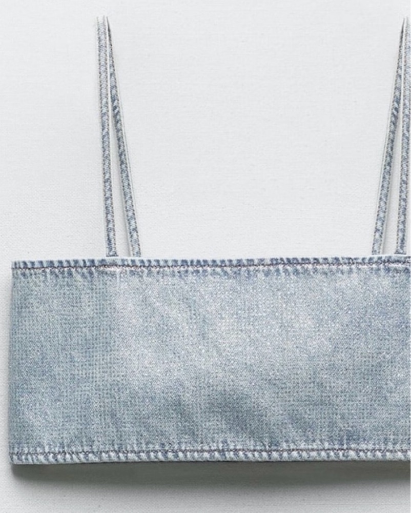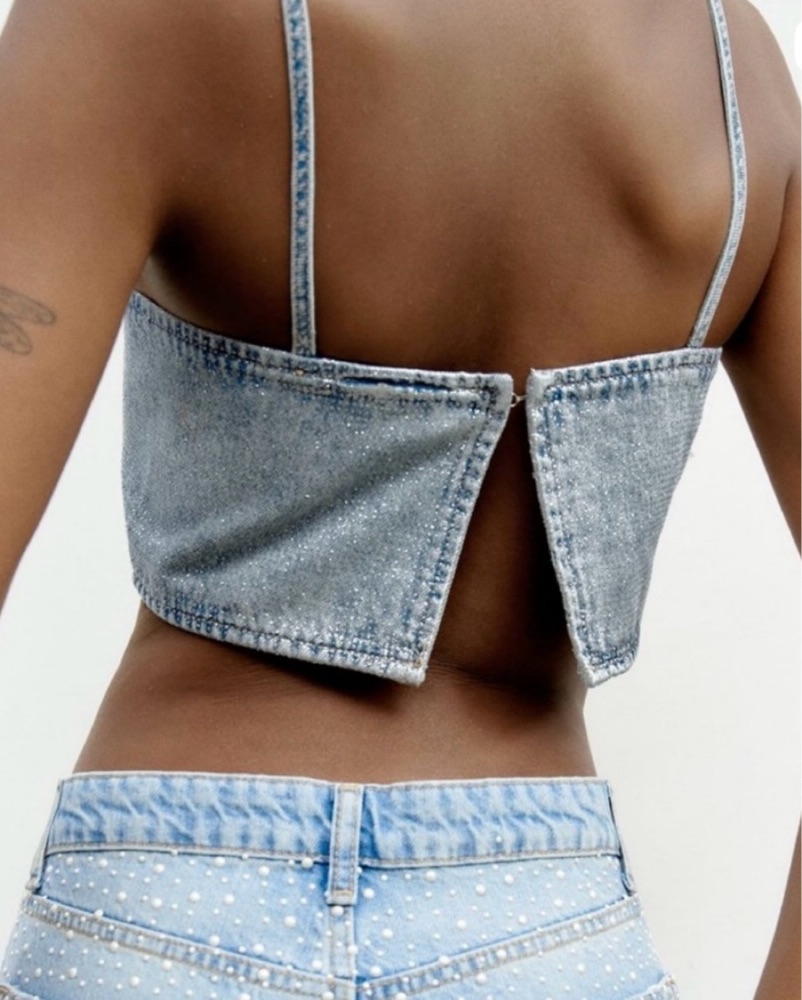 Zara Women Denim Glitter Crop Top