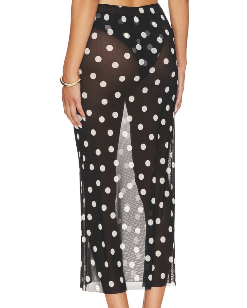 Mesh fabric with elastic waist, midi skirt. Polka dot midi skirt cover up. Worn once brand new condition ! Must wear something under since this is see through, mostly used as cover up for bathing suits. 🖤🤍