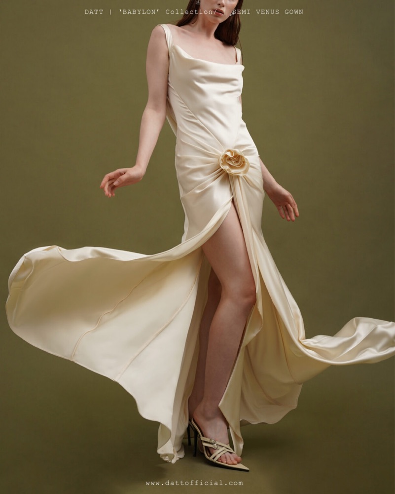 DATT Semi Venus Silk Dress In White by DATT Official - Pickle