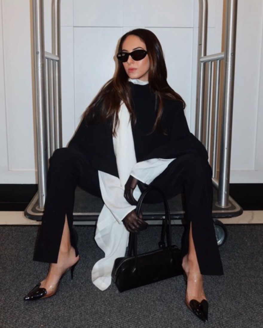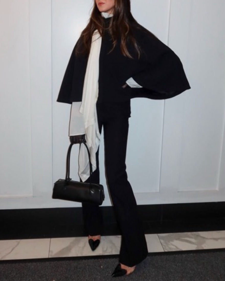 Rental includes all 5 pieces: Top: no brand size S/M. Jacket: Zara one size poncho. Pants: massimo duti size 4/6. Shoes: Amazon 8.5 Bag: Alaia le teckel bag large.