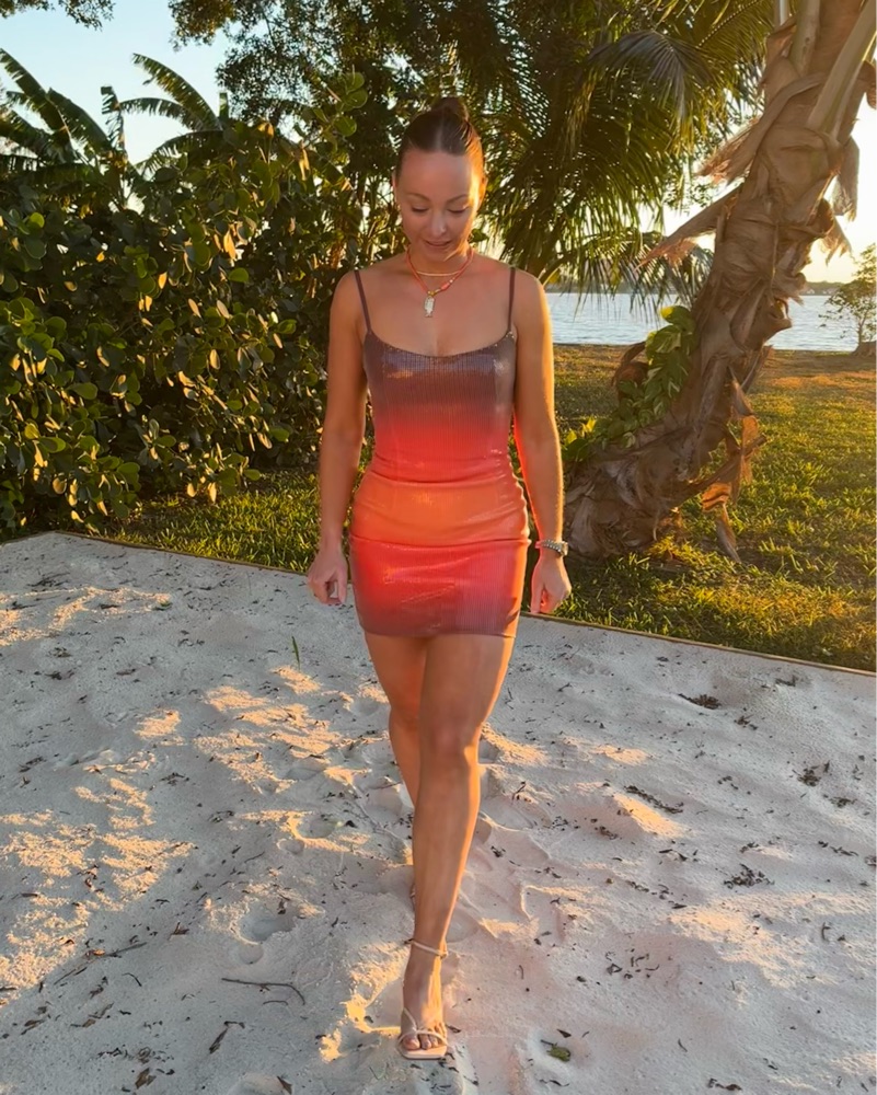 Sequin dress from runaway the label. Super cute, sunset/ spritz vibes. Great for vacation