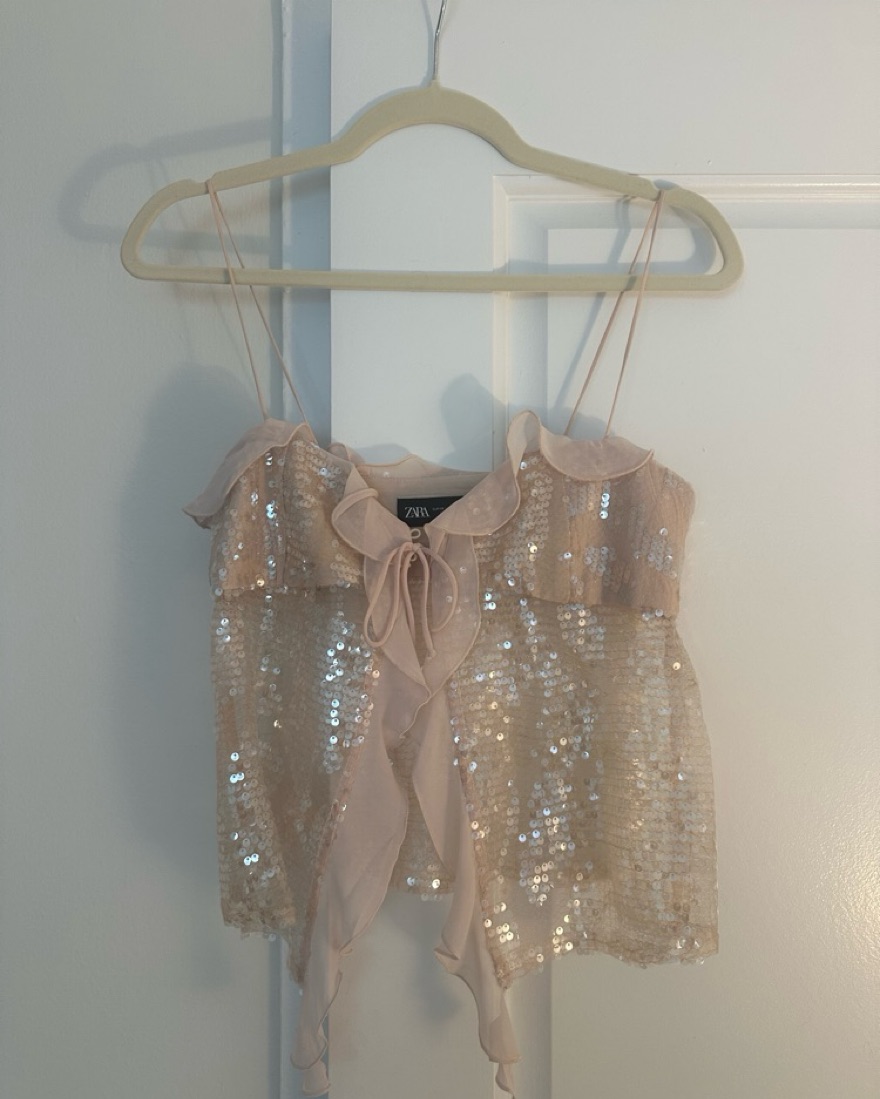 My absolute fav top for spring!!! The viral pink zara sequin top