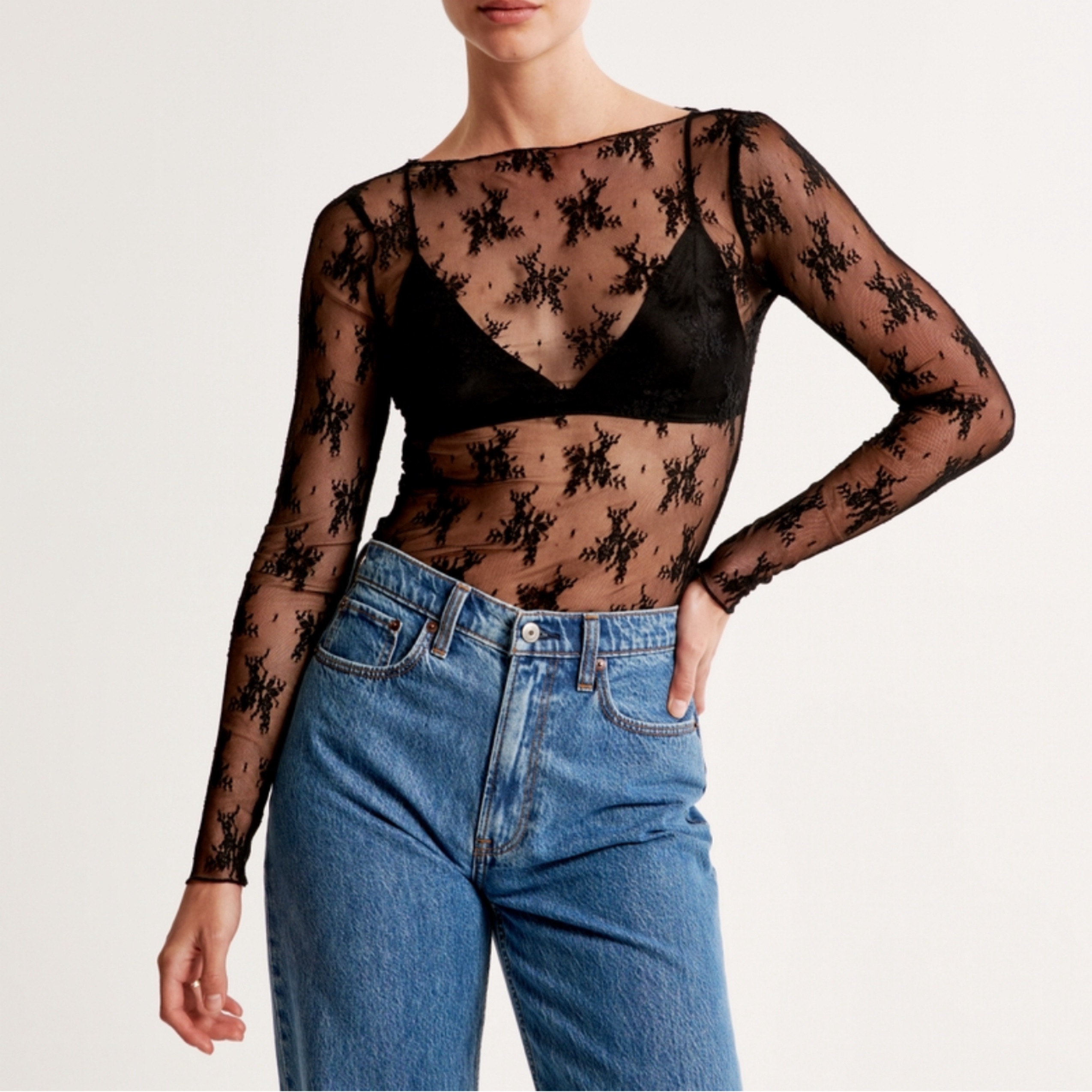Abercrombie long sleeve sheer lace top (bralette is not attached). perf for night out, please be delicate w top :)