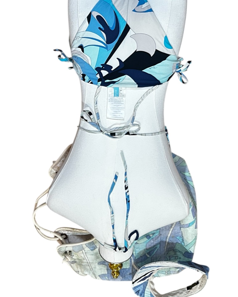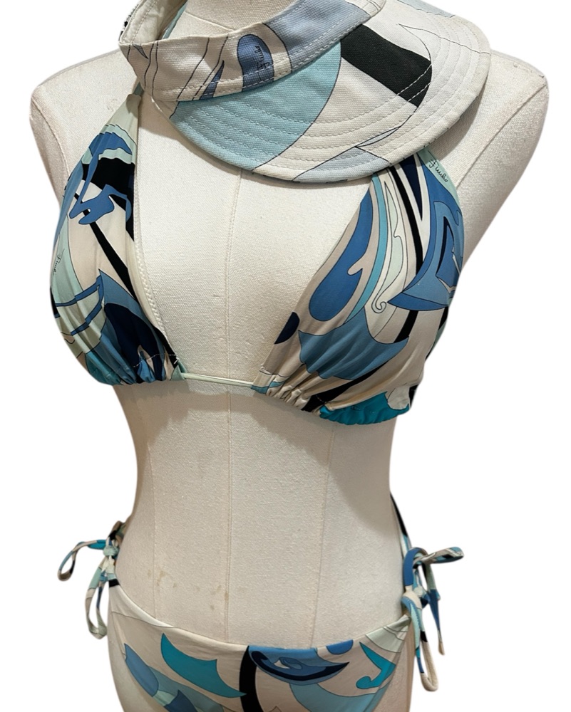 100% authentic vintage Emilio Pucci adjustable tie bikini (size S/M) + Visor hat + bag (bag in very used distressed vintage condition, please dm for more pics)