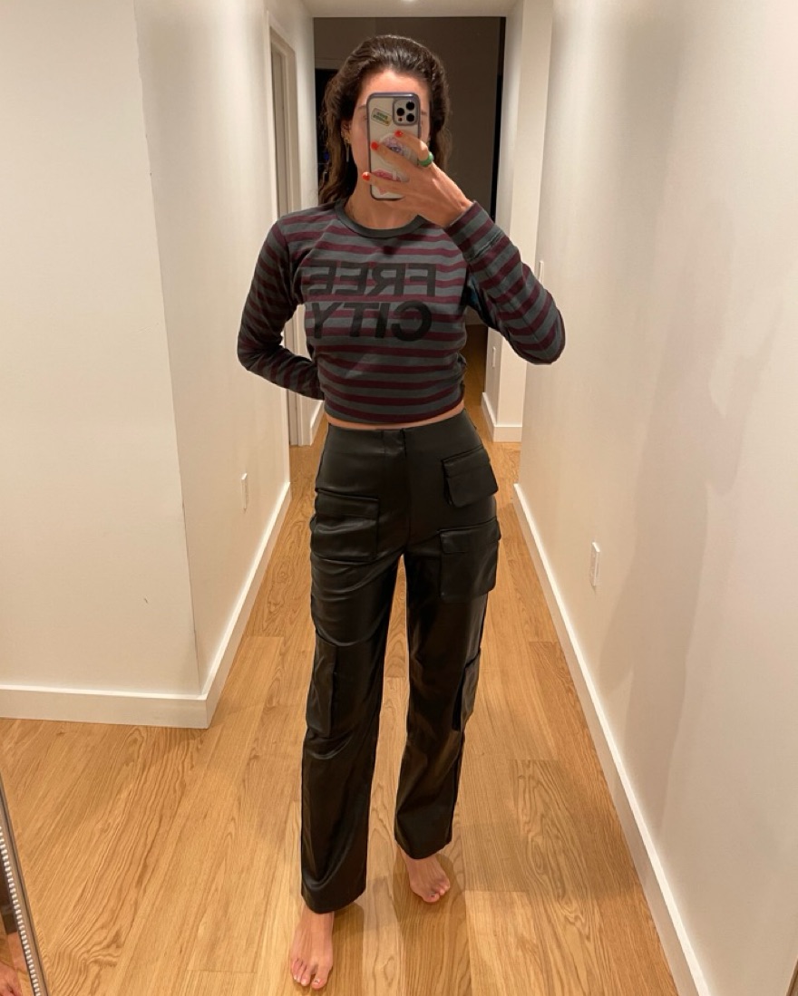 Purchased from Revolve. Perfect condition like new. Zip fly with hook and bar closure Patch and slip pockets throughout Soft faux leather fabric