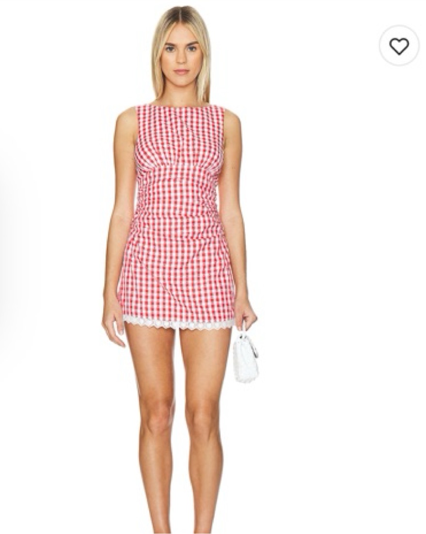 MAJORELLE mini dress - the Peggy dresss in red & white check. Fits an xs/s — 50% cotton, 50% polyester