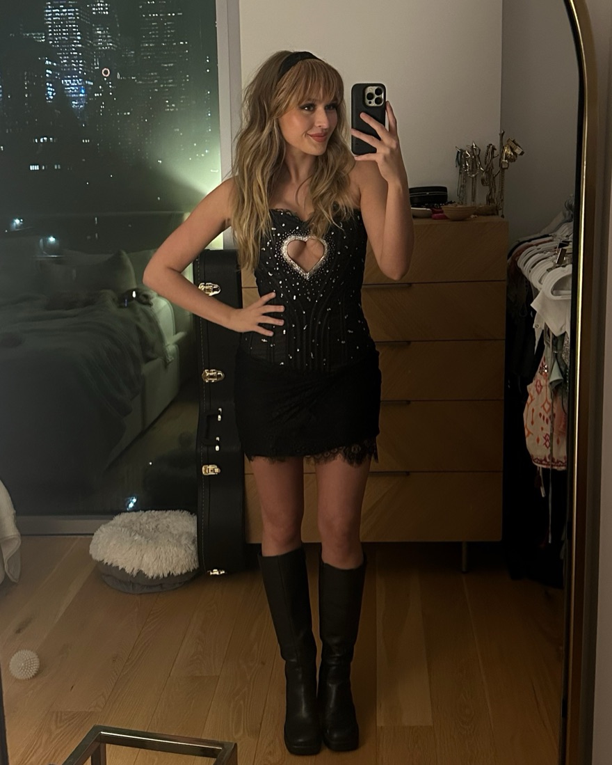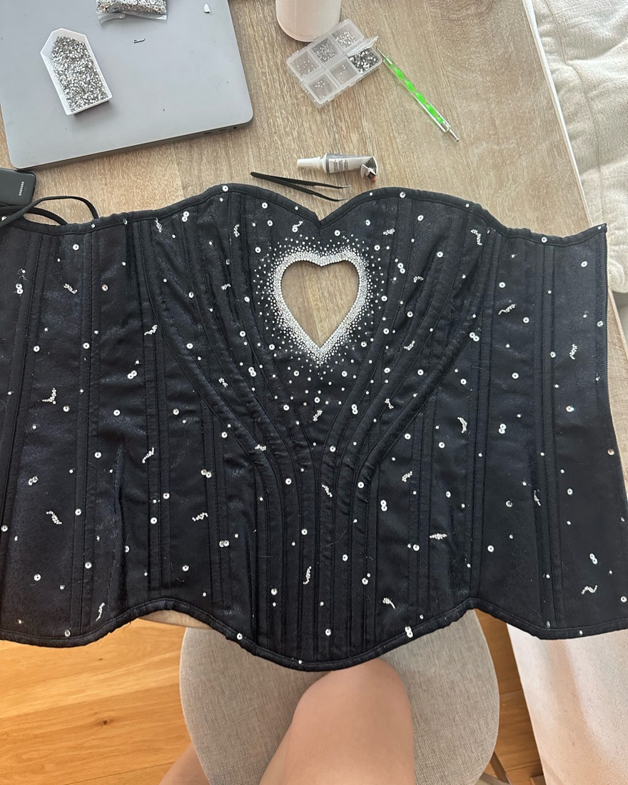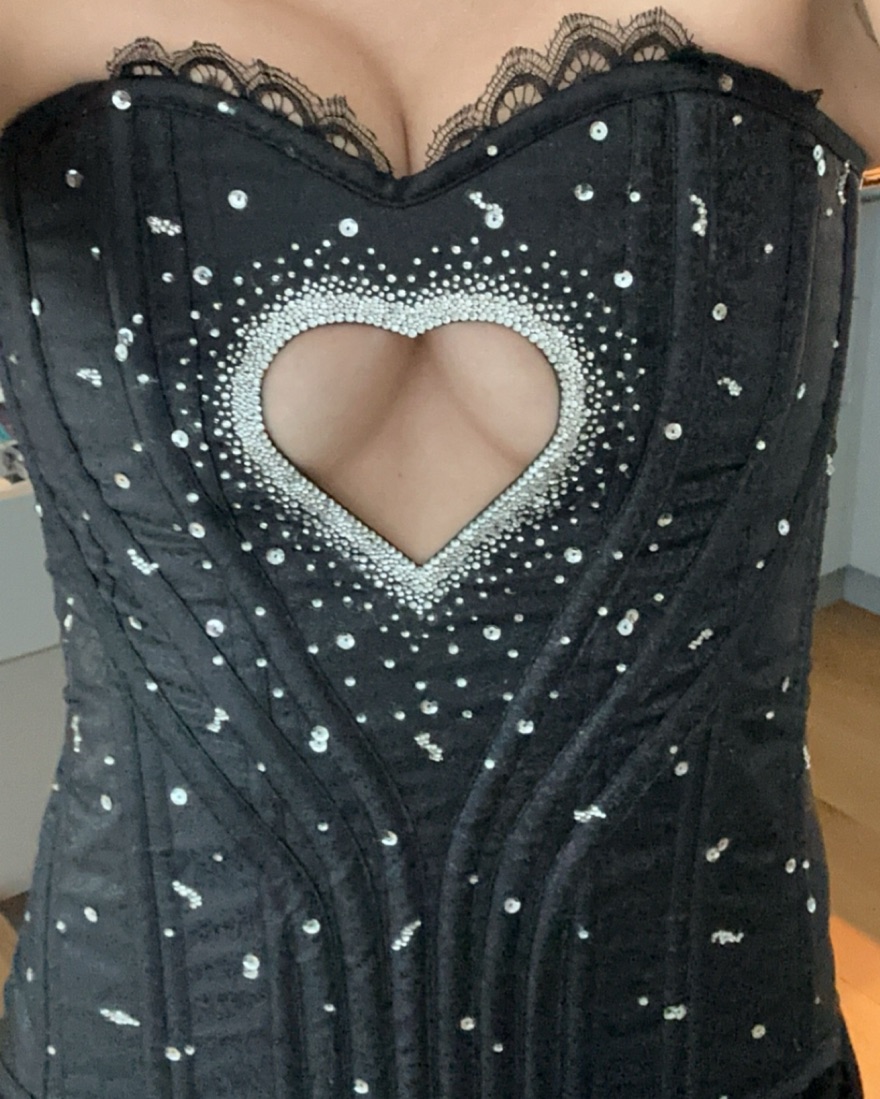 Sabrina Carpenter Sparkly Heart Cutout Corset Halloween Costume (size small, black), custom/hand-made! Price includes dry cleaning fee!