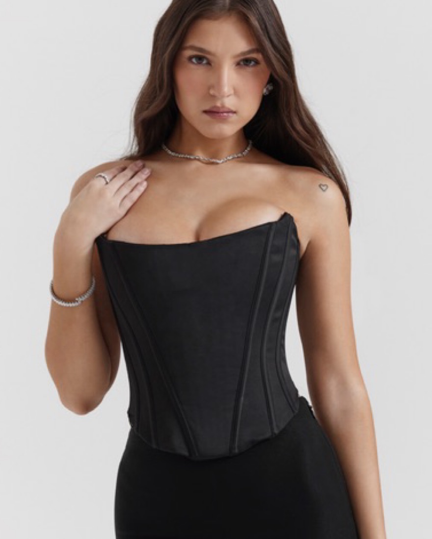'Genevieve' corset is made from lustrous duchess satin that'll make you feel your most glamorous as soon as you slip it on. It has a décolletage highlighting strapless bodice and the sculptural boning defines your waist. The pretty lace up back allows you to control the fit and we love this paired w