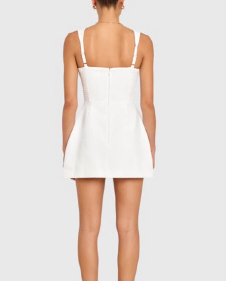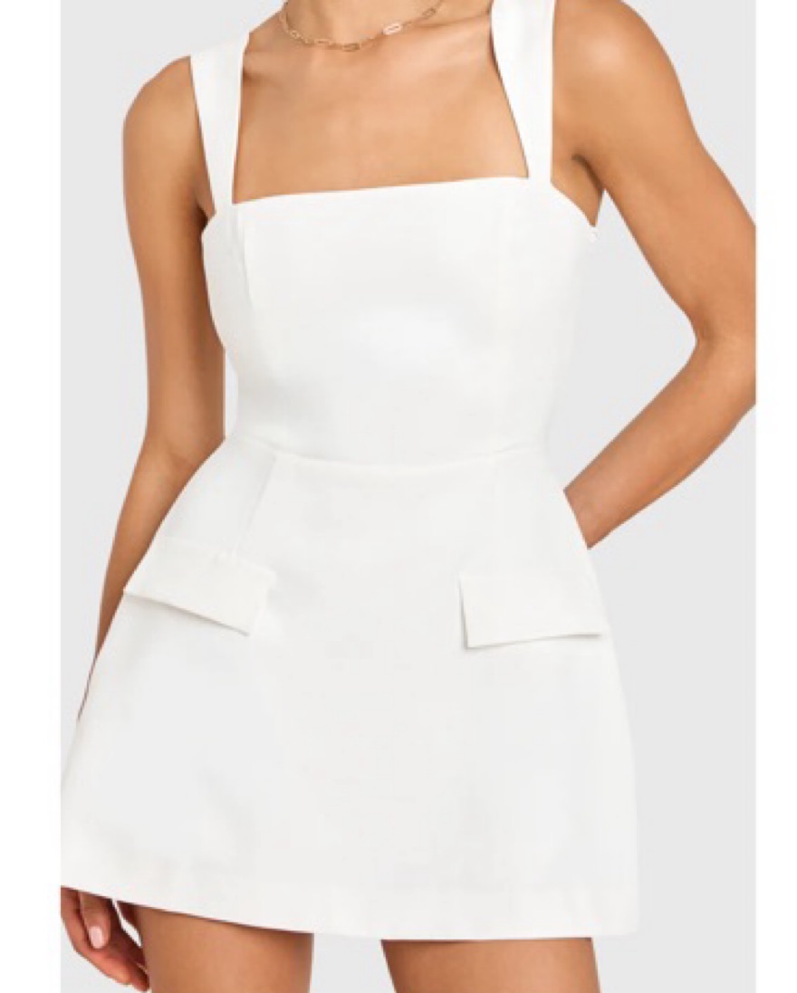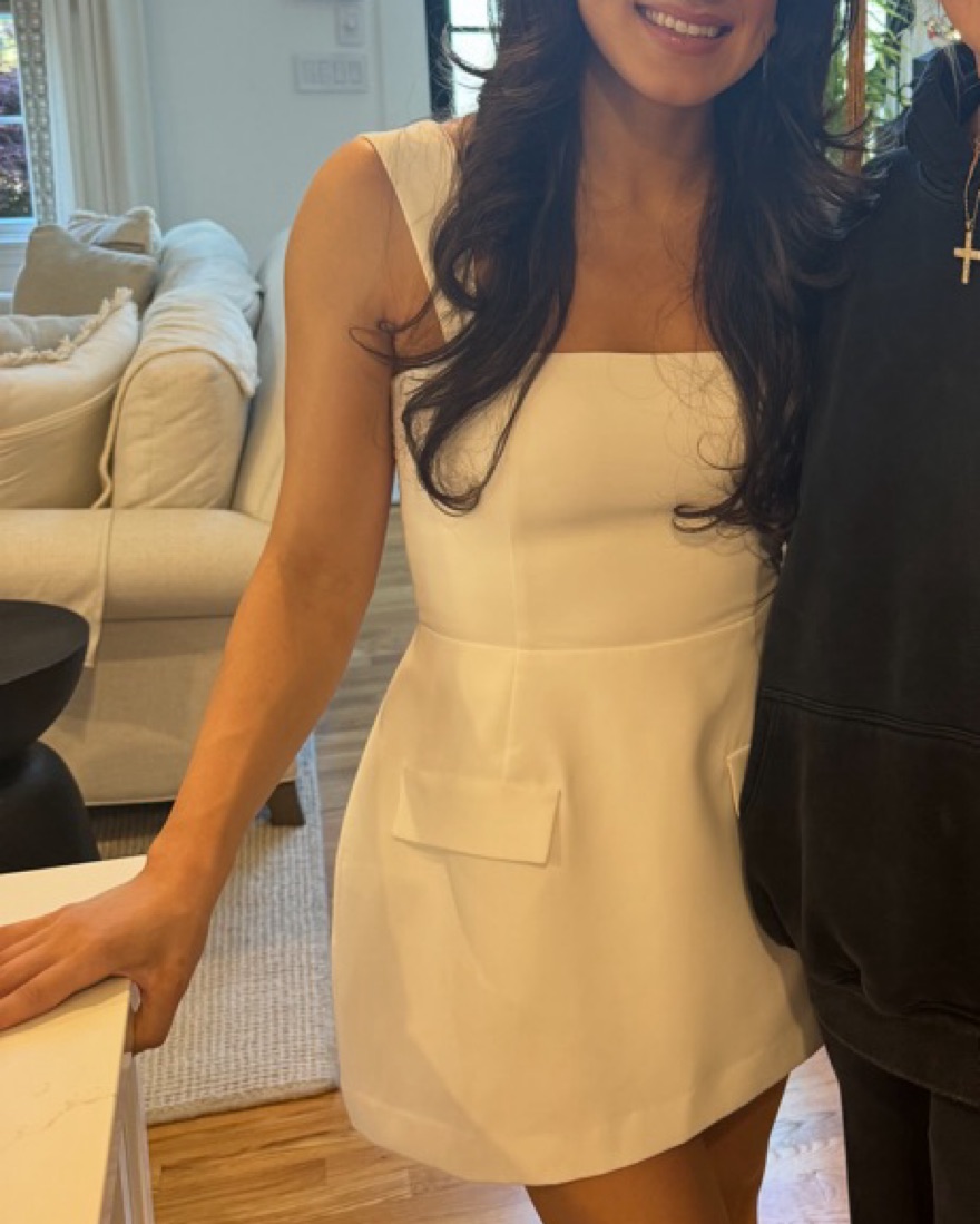 Bethany Skort Romper by Amanda Uprichard. This chic and stylish white mini dress is perfect for a special occasion. I wore it for my graduation! The structured silhouette and sleek design make it a versatile choice for a night out or a formal event.