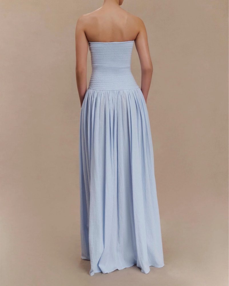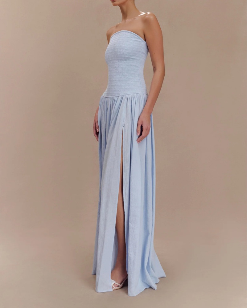 Maureen Cotton Shirring Maxi Dress - Powder Blue. Great for weddings!