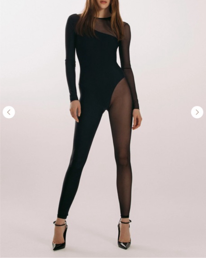 Mesh Asymmetrical Jumpsuit by Mesh n flesh - Pickle