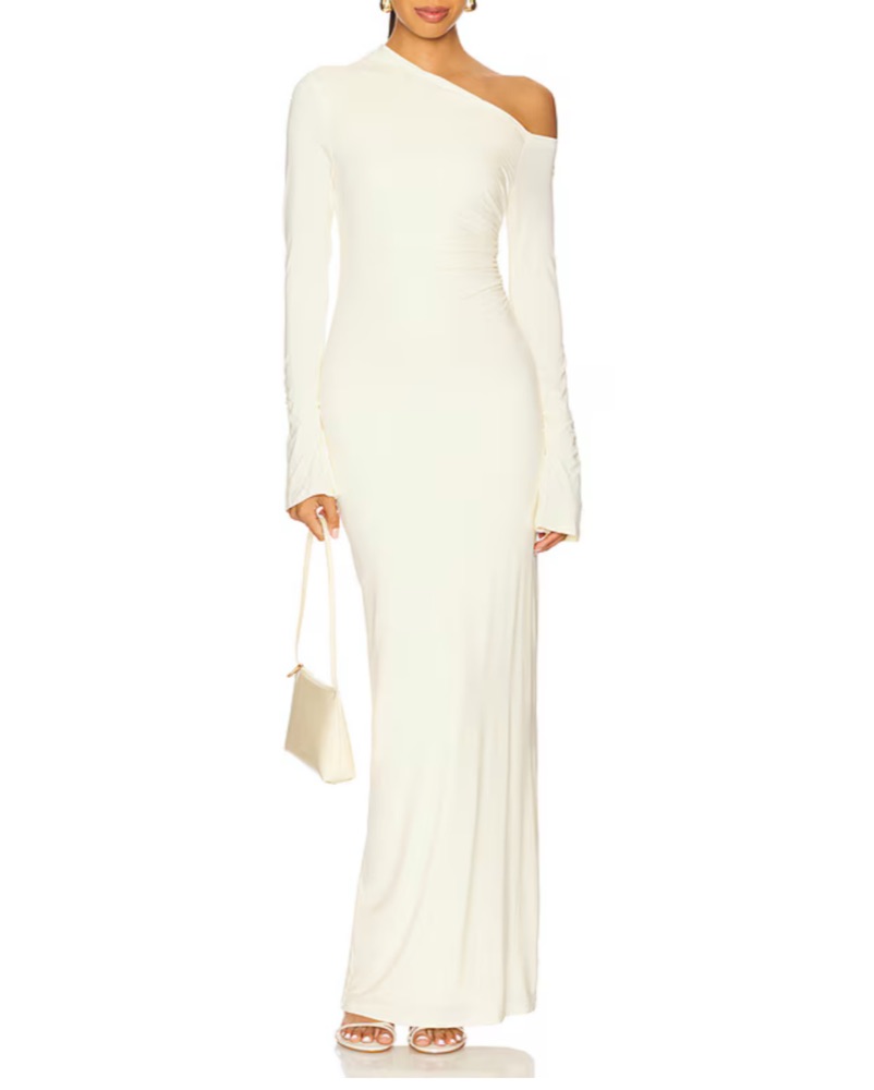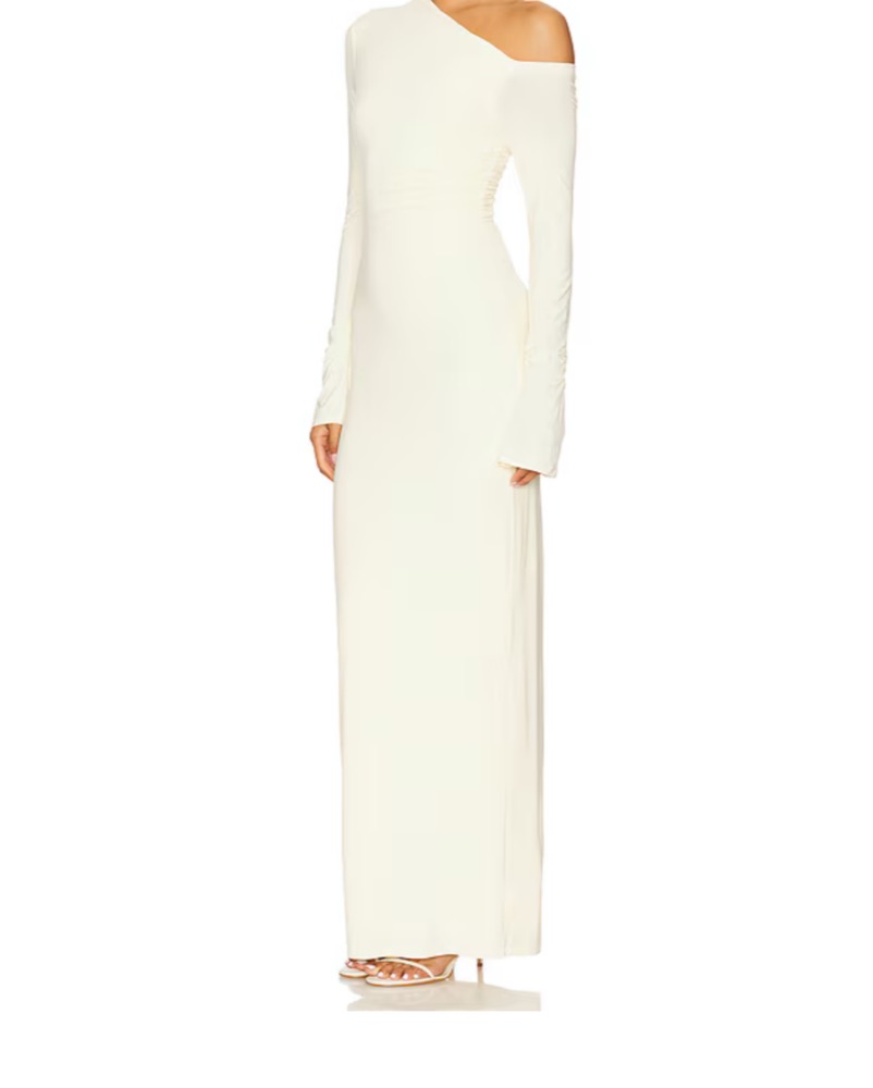 Stunning butter yellow maxi dress is perfect for a formal event or special occasion. One-shoulder design. (cleaning fee included in price) spots and stains will be charged extra
