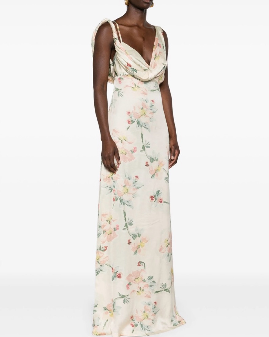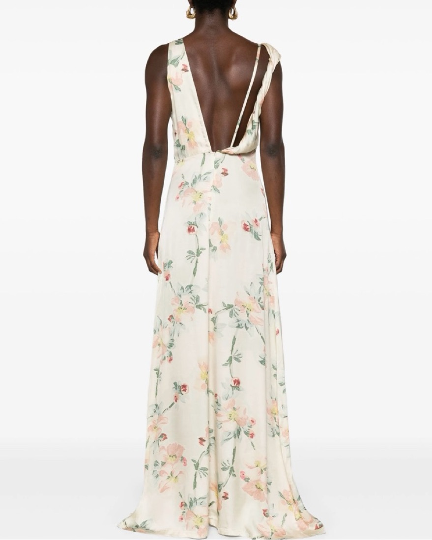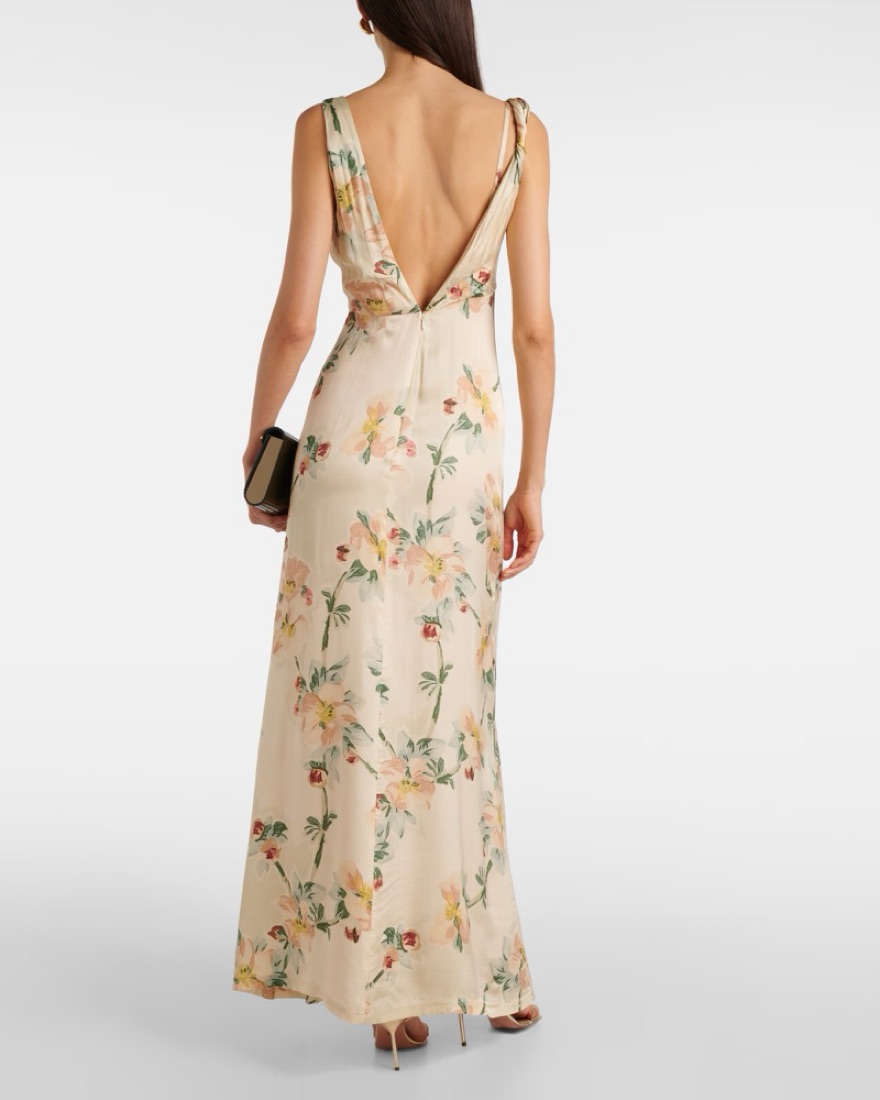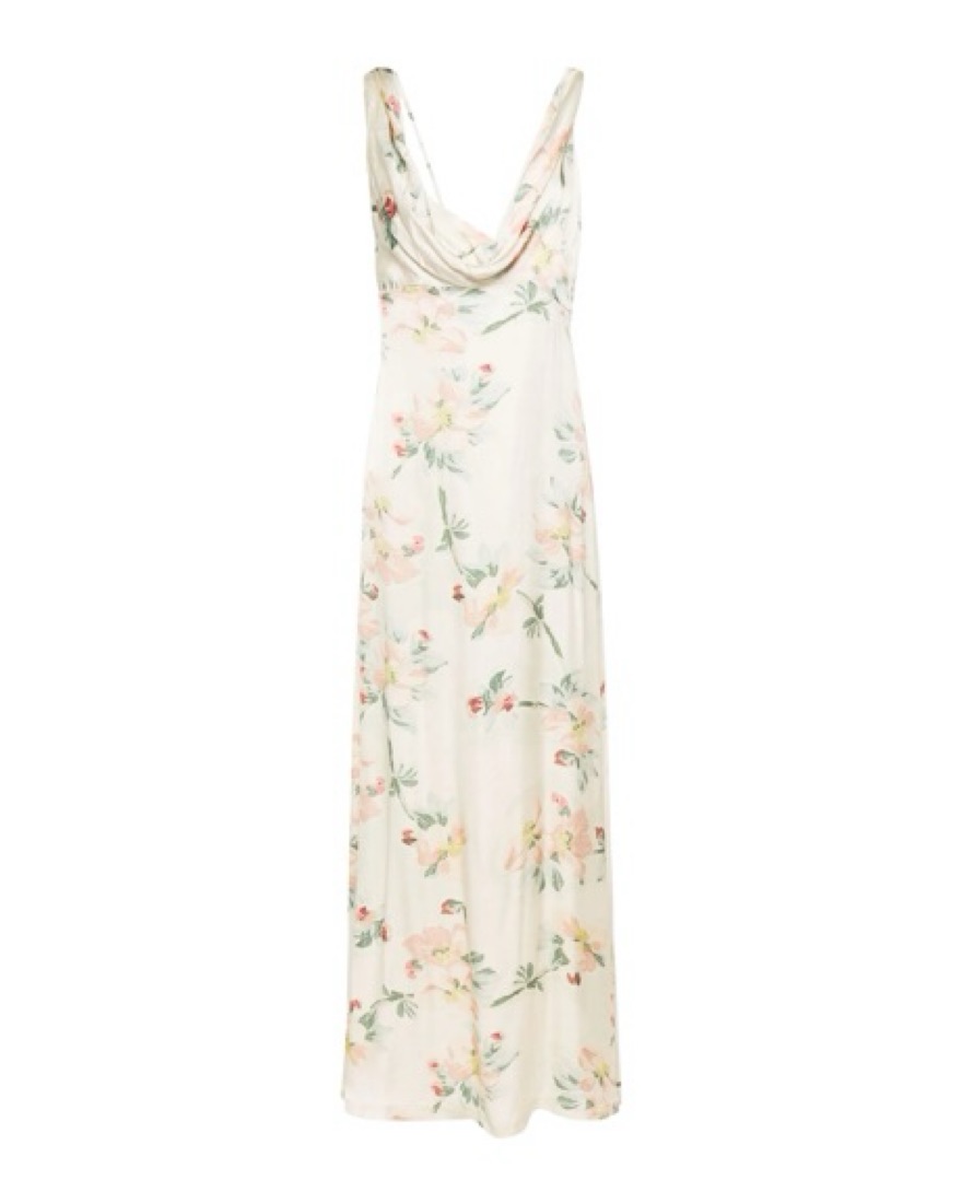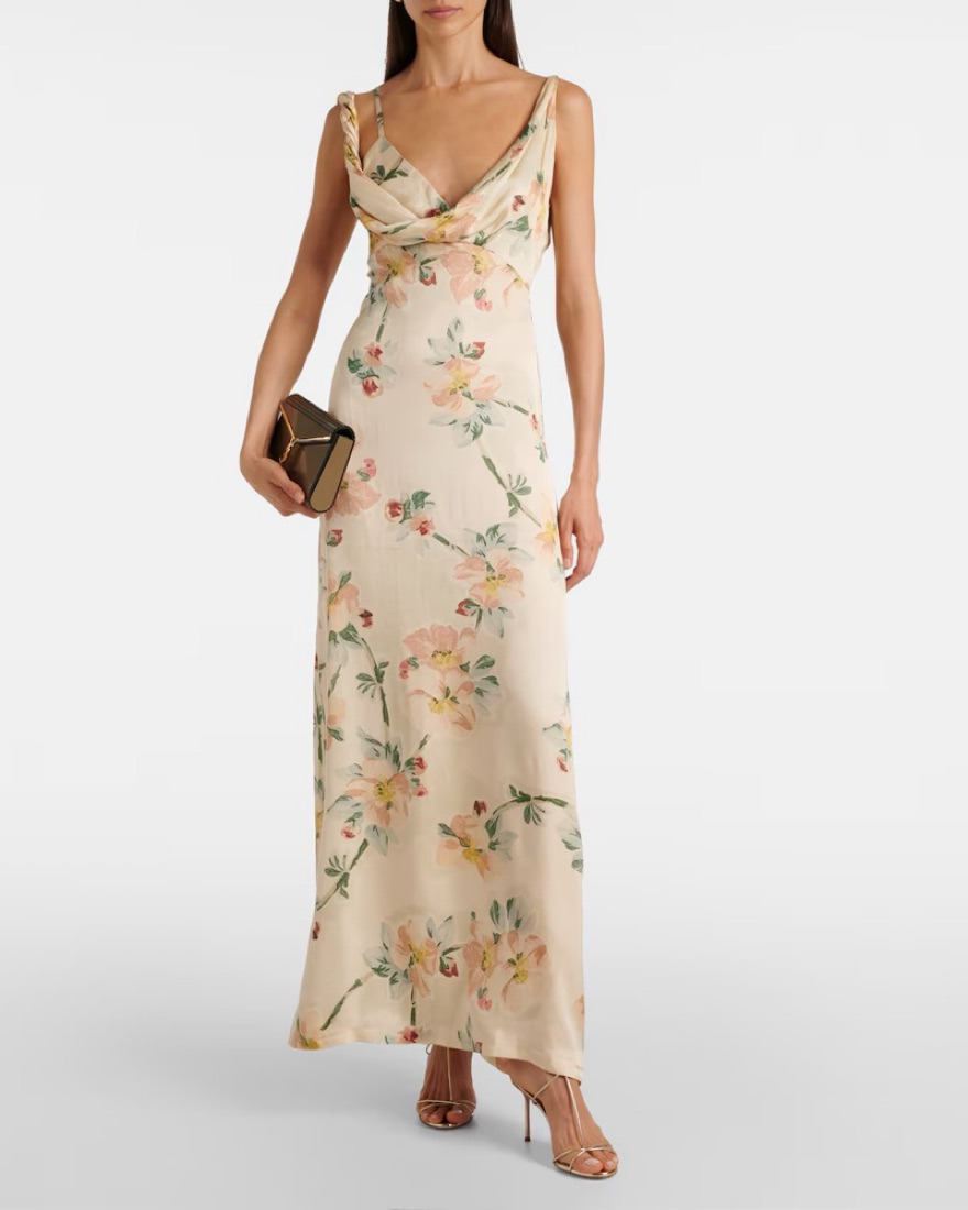 Toteme twist drape maxi dress features a front seam detailing with back zip closure. This dress is so beautiful in person, almost wore it for my bridal shower. It’s not an overly fancy material, so can be dressed up or down, but super elegant shape. Pictures don’t do it justice!