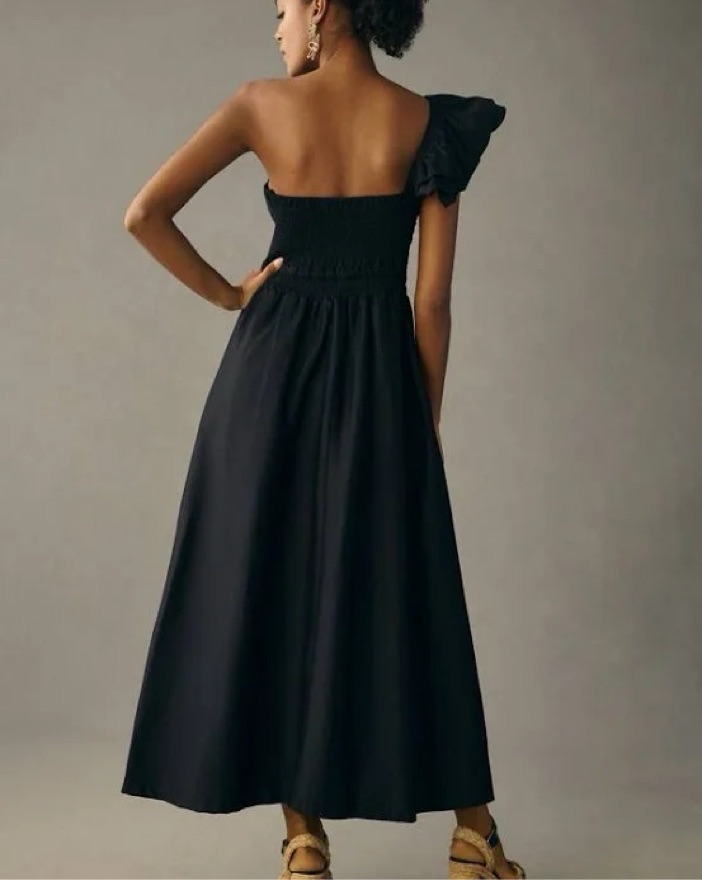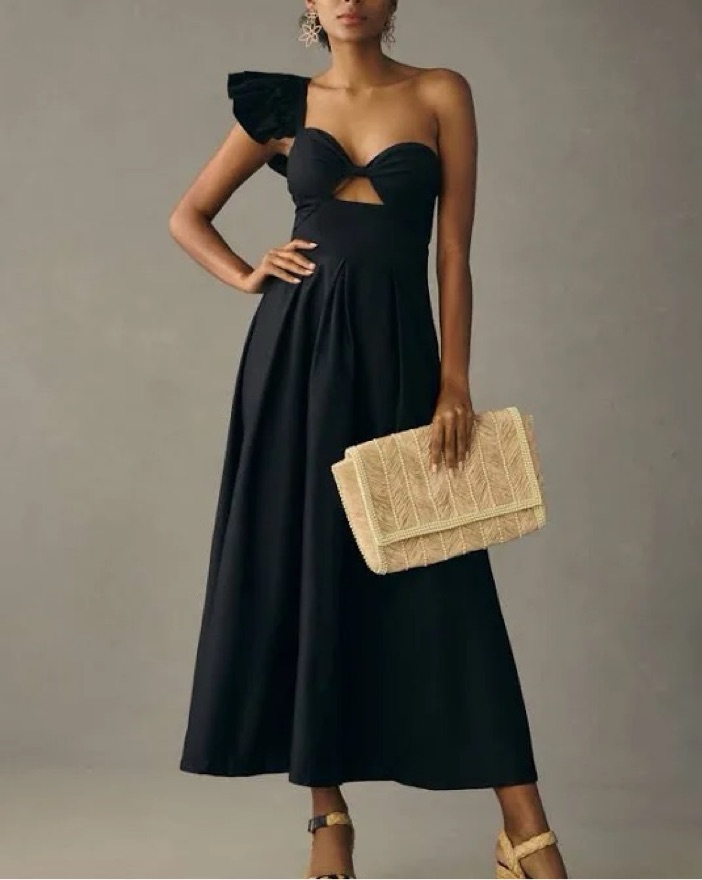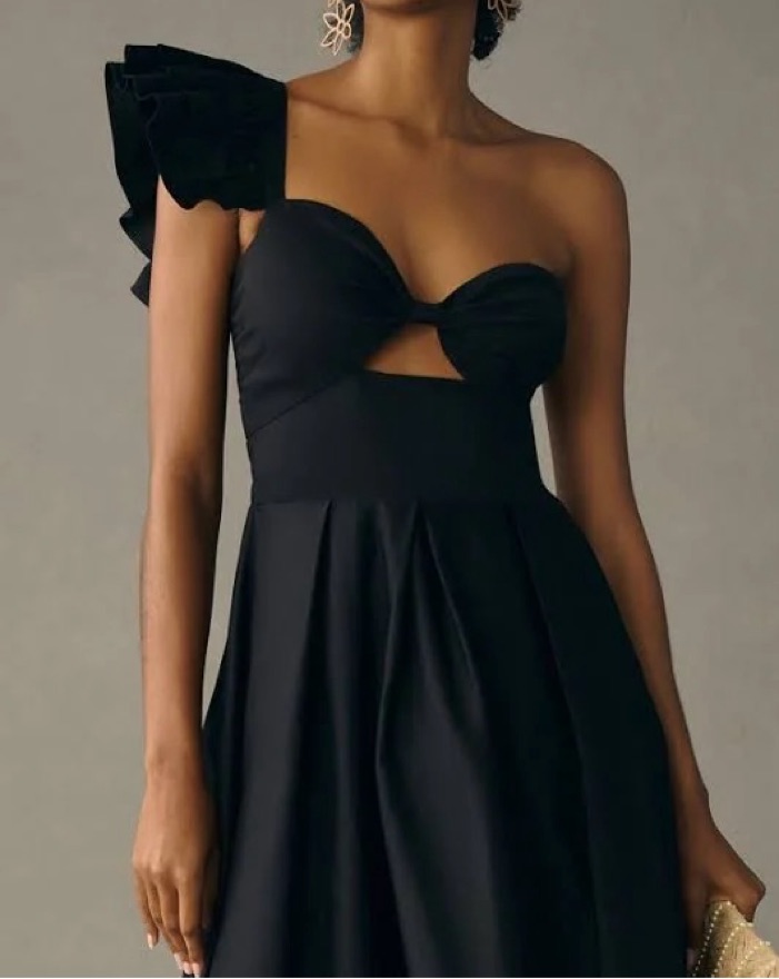 Eva Franco One-Shoulder Pleated Dress by Eva Franco - Pickle