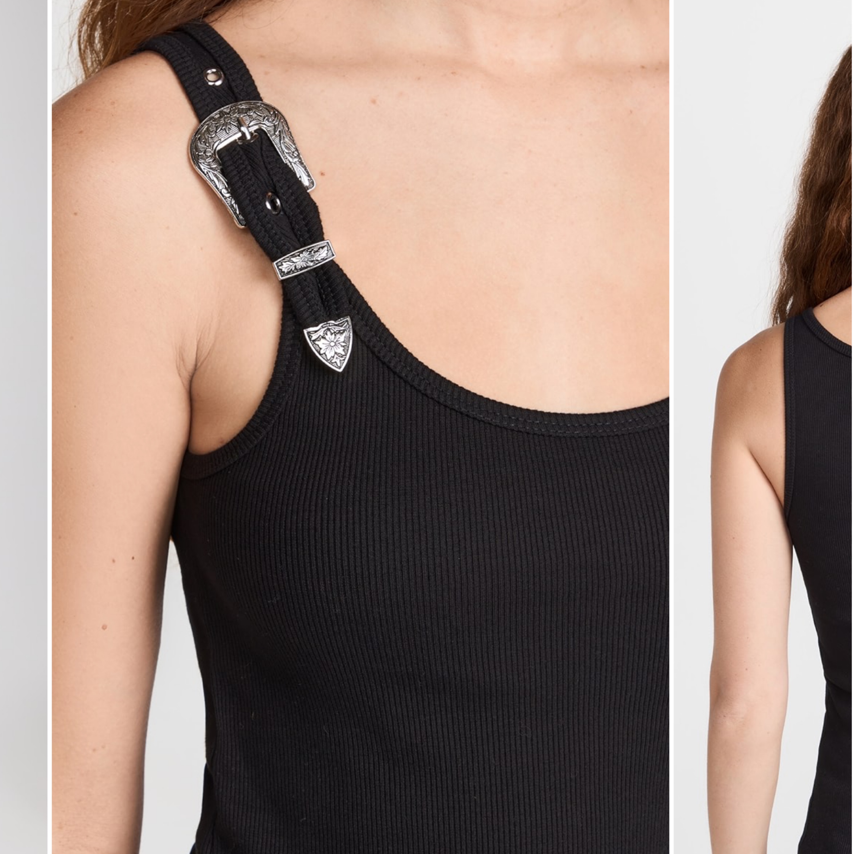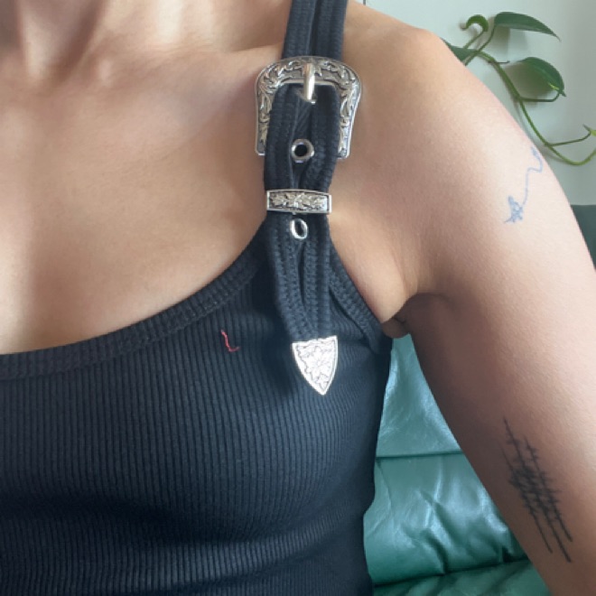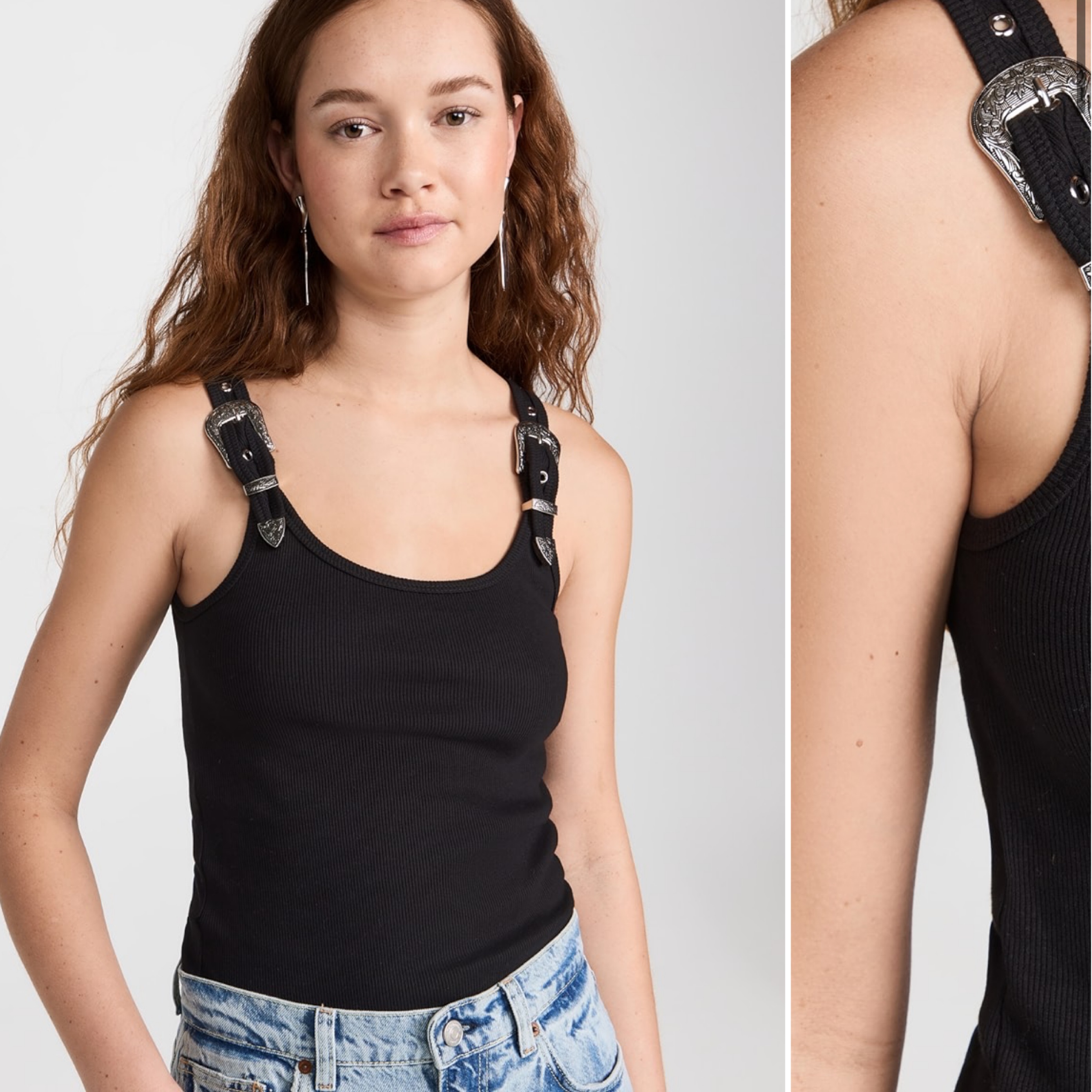An everyday basic with a truly unique twist, this figure-skimming Pixie Market tank draws the eye with western-style belt buckle hardware