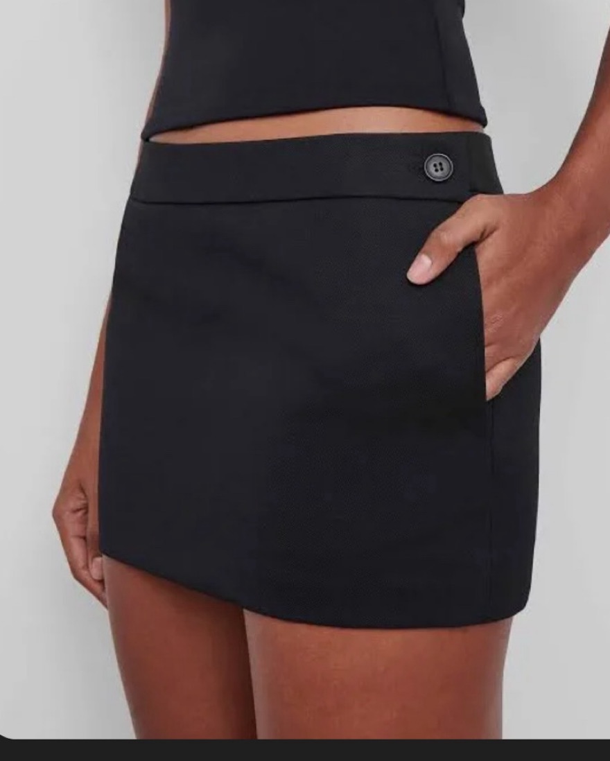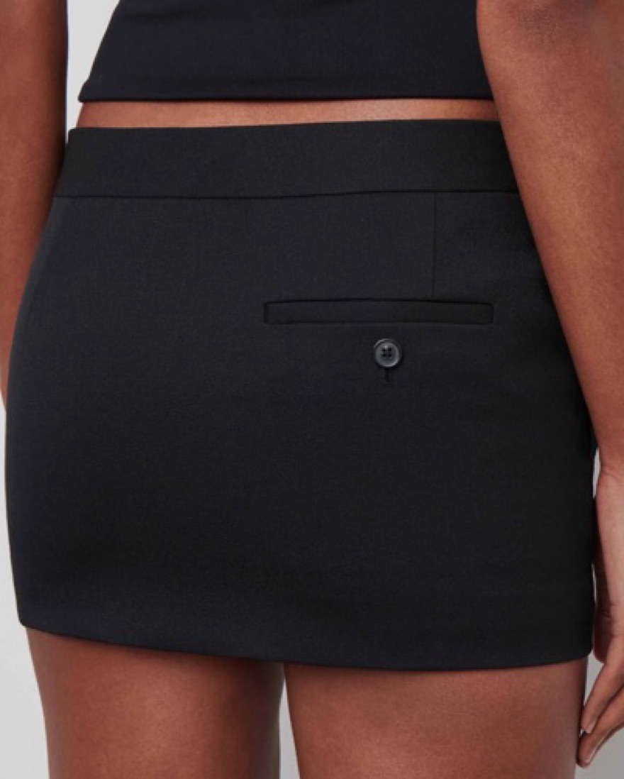Wardrobe NYC Black Mini Skirt / low rise / side button fastening