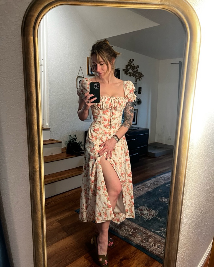 Stunning small house of CB dress in floral print. Makes your waist look insanely tiny and is so feminine.