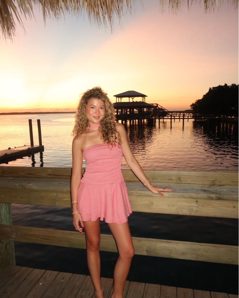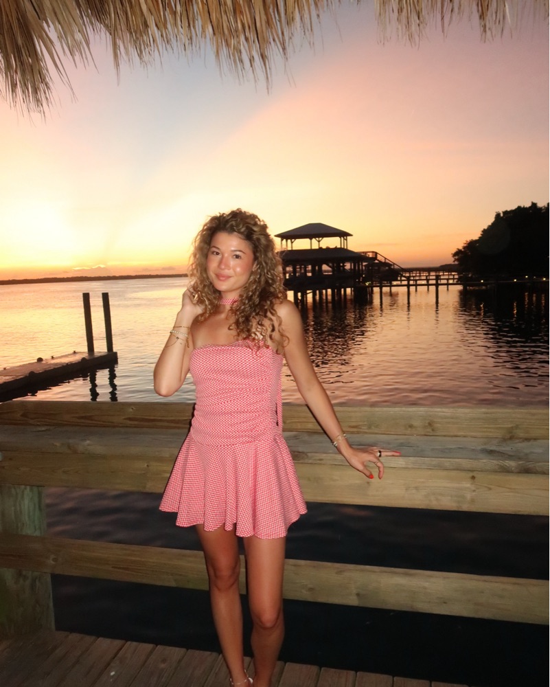 Red Gingham Mini Dress w Neck Scarf