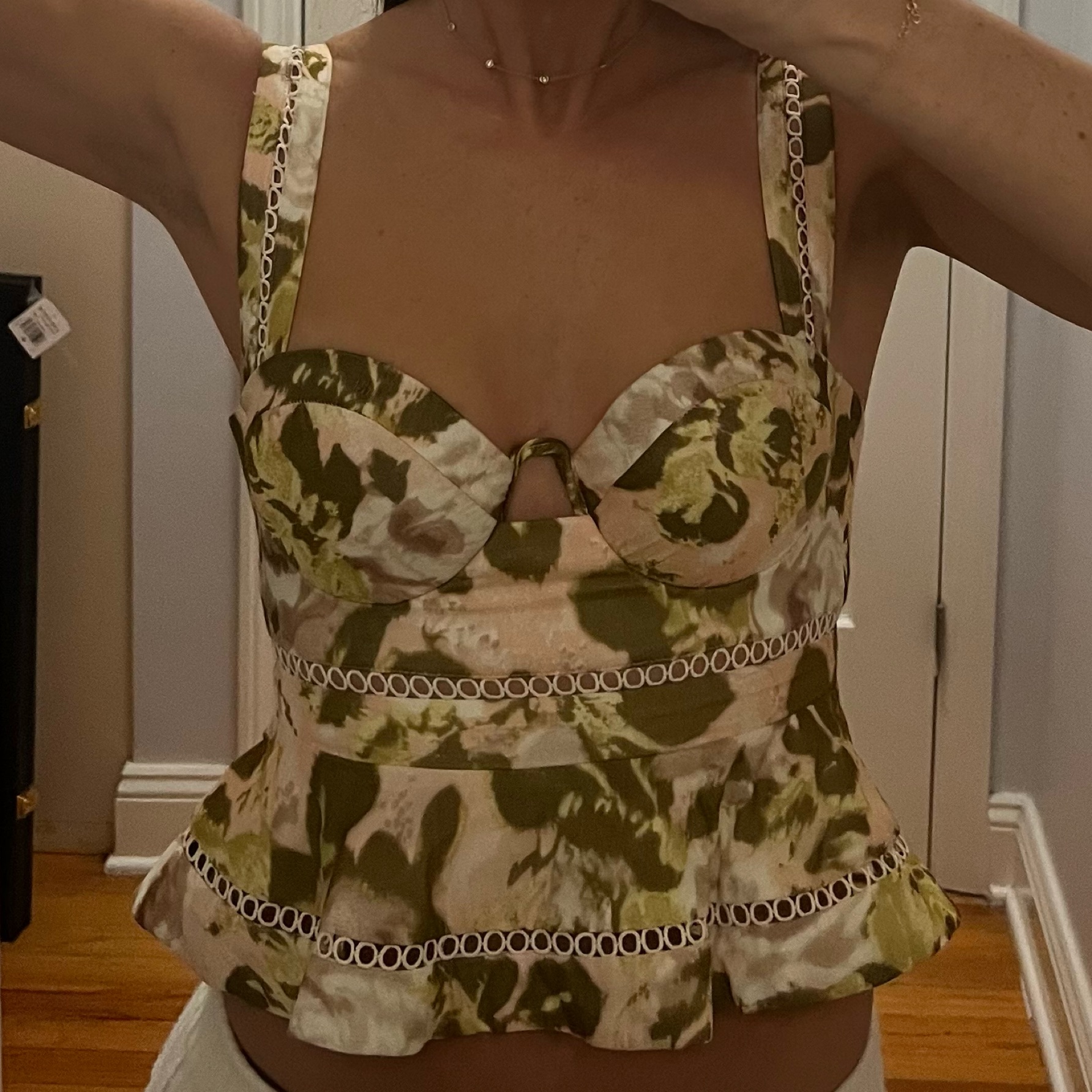 Zimmermann pink and green tank top. Size 0. I am a 32B/C- Any size larger than that will be tight in your ribcage. No stretch.