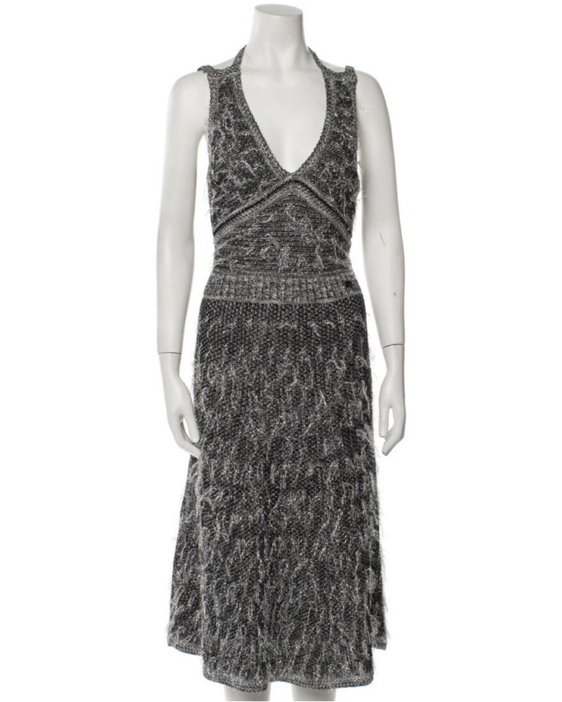 This beautiful tweed midi dress is perfect for a formal event or upscale cocktail party. The intricate pattern and flattering silhouette create a sophisticated and chic look.