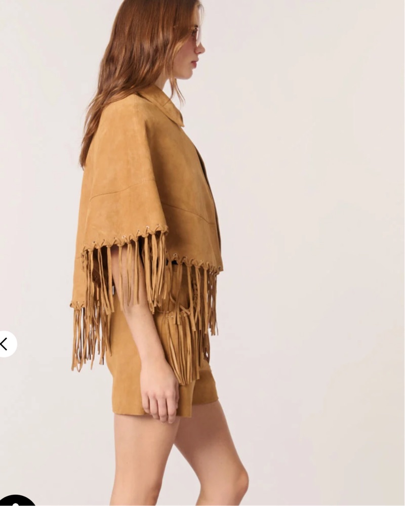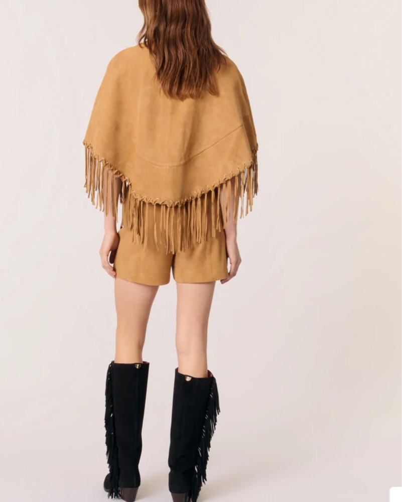 Maje Short Leather Fringed Cape